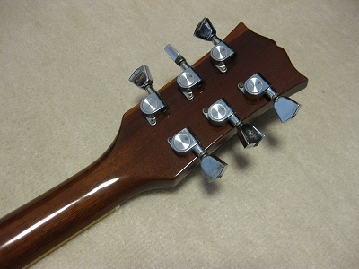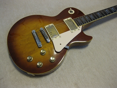 | Joodee Yamaki made Les Paul I have several Joodee Les Paul. This is one of them. The pick ups are changed, I'm not sure which brand, But it is pretty good tone. The gold plating are rusted, getting become like silver color. But it is very much vintage looks. The neck, frets and electric circuits are fine. The body is not Ply wood. Most of 70's made Japanese Les Paul guitars have PLY (2 PLY solid), but this is not PLY, solid body. Maybe, Late 70's moadel, I guess. Yamaki changed the specification against other replica guitars. All our guitars are checked by myself before delivery. You could use the guitar when you get it with good condition. Well, it is good era JV guitar anyway. This guitar will be shipped with soft case. |