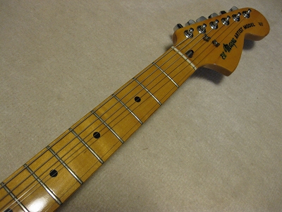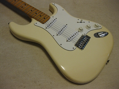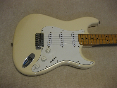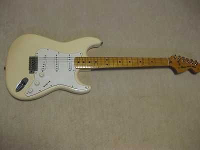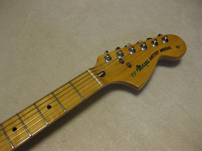 | El Maya Stratocaster Junior Model EL Maya guitar is one of my favorite JV guitar. It is very good construction. I could say I love "Joodee", "El Maya", "Yamaki" and "John Bennet". This is El Maya Artist Stratcaster. I have several El Maya Artist Strat. But, this is white color. The neck is almost straight now. The frets and electric circuits are fine. Truss Rod adjusting bullet is slitted. I guess that the previous owner tighten and made Hex hole broken. It is not problem for playing. But I should specify. If I have a time, I will fix this part. I'm guessing the PUs are all original. Pretty good tone. You can enjoy good tone! Well, try JV legend guitar! |