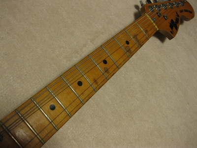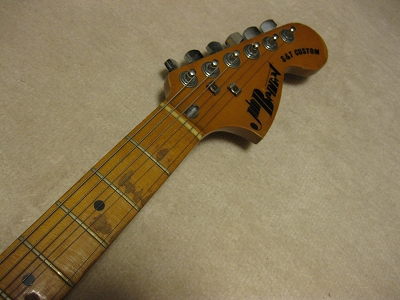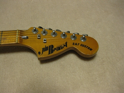 | John Bennet Telecaster Custom model 1975 made John Bennet guitar is probably made by Kawai Gakki. It means that it is bother guitar with early Fernandes guitar. I found it from the neck, body design and serial numbering It is very seldom to see John Bennet guitar even in Japan. I guess the production of John bennet guitar was very limited because of its sales. The neck is straight with bonded Maple finger board. The frets are proper condition. The finger board paint a bit peel off. Maybe, it was made on purpose. I guess the previous owner didn't play this guitar so much. The body is so so condition except the sunburn of sticker. It will be disappear if you put the guitar in your room within a couple of years. The weight is bit over 4Kg. A little bit heavy body which is character of old days Kawai made guitar. I have same guitar in sunburst color. I sold it a couple of month ago. The new owner said that he loves John Bennet Telecaster, anyhow. Well, just try old JV guitar! |