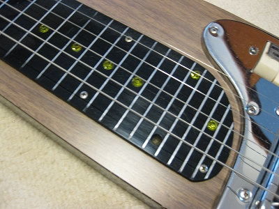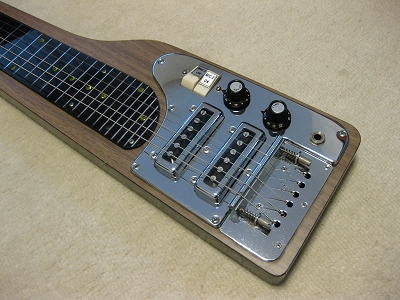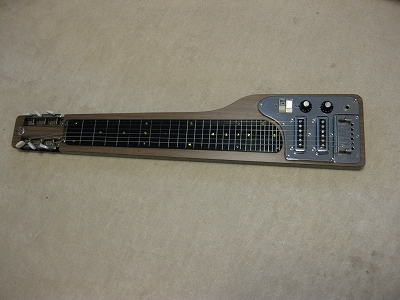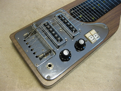 | Teisco Steel Guitar 60's made I got several Teisco Steel guitars. I sold some of them. I have been collecting only Teisco model. Maybe I have expliained before that I have a plan to make the steel guitar by myself. This is a reasn why I'm collecting them. I got this recently. This one has 2 pick up. The design is alsmot same with my other steel guitars, but has the selector switches. This steel guitar is very good condition. Metal parts are still fine. Of course, electric circuit are fine. It has the position marks made by plastic diamond. 2 of them are missing. No case for this steel guitar! If you would like to try to use the steel guitar on your band or recording, Please try this vintage Steel Guitar ! |