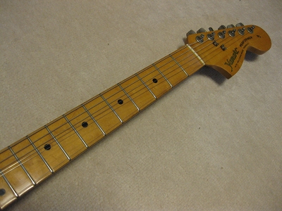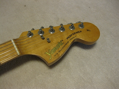 | Yamaki Stratcaster Model Yamaki is a famous acoustic guitar manufacturer. The founder is Teradaira brothers. The elder brother managed the Daion Corporation which is distributing the Founder, Joodee and Yamaki. The younger brother was managing the Yamaki factory (Before establishing the Yamaki/Dion, they were working for Zen-On). This stratocaster model was maybe made in early 1980's or late 1970's. This guitar was made with great care. The neck shape is soft V grip type. Probably, it is high price model. On the neck set plate, there is a hole said "Epochal Rod System". Maybe from this hole, we could adjust the truss-rod. It said patented. The condition of this guitar is great. Well, it should be over 25 years old guitar, even so, it is still beautiful looking. The neck, frets and electric circuits are proper condition. Good tone too. I personally think Yamaki is one of good JV guitar compare with other brand. It can be used for professional use. I have been collecting many JV guitars. Good era's great guitar ! |