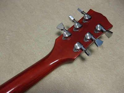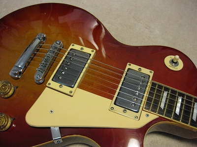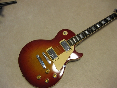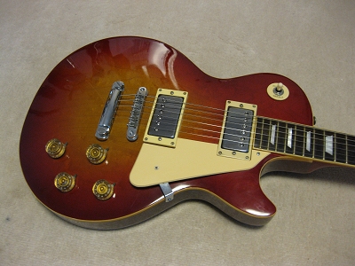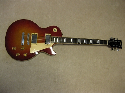 | Joodee (Dyna Made) Les Paul STD Model This is fair condition Las Paul Model. I rated this guitar as mint- because I repaired the neck side crack. It happened sometimes for old guitars like 30 years old. Maybe, the owner didn't pay attention for humidity. Anyway, the neck side has been bonded. Also, the binding of horn curve has a bit crack. Beside these, this is good condition Les Paul. I have only changed the output jack plate. It was cracked. The neck is straight. Truss-Rod is fine and adjustable. The frets are proper condition(has a bit worn). It is not brand new guitar, anyhow. The electric circuit are fine. The neck pick up mount ring a bit cracked (around the 1 screw). It is still O.K. (I didn't change it) Pick UPs are set a bit angled. I think you had better adjust it when you change the strings, if you care or don't like it (I was O.K. for this). Well, try real Japanese Vintage Les Paul Model. It is over 30 year old! The soft GiG bag will be delivered with this guitar. |