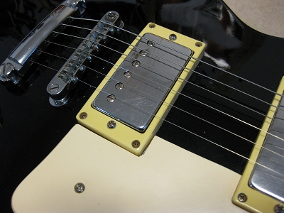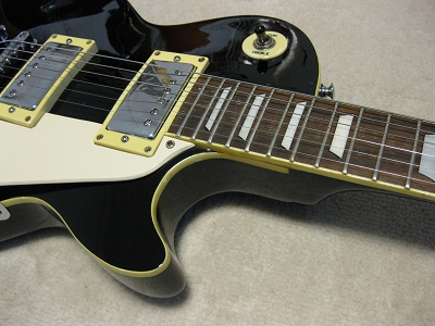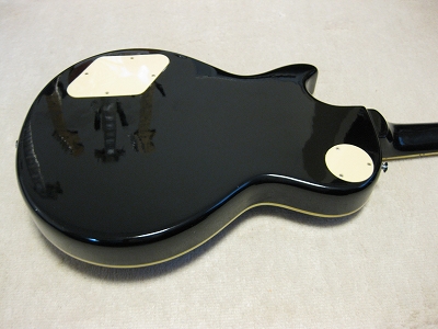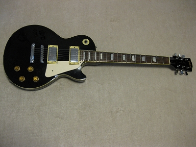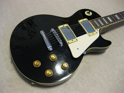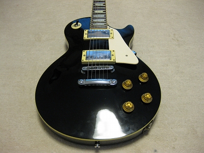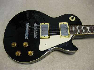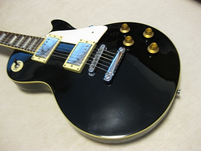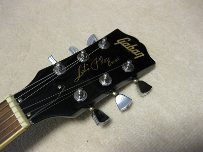 | Gaban Les Paul Standard model This is Gaban Les Paul model. It is not really good Gibson replica. However, Gaban - Kasuga made - brand is historical JV guitar. You could see the history of Gaban at my WEB page. This guitar is Plywood body. The top should be plywood. Probably, they use the press heater to make the arched top by plywood. It takes much time to make??? The neck is maybe mahogany or other similar wood. It should be 2-3P. The finger board is rose wood. The neck is straight, frets are good condition. I would say good conditioned guitar. I'm not sure Pick Guard is original model or not. Well, this guitar is historical JV guitar. Do not expect Gibson Les Paul sound !!! |