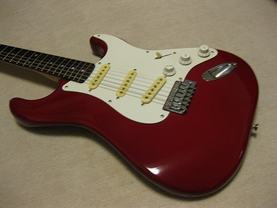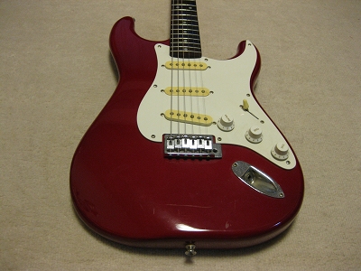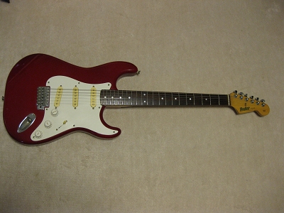 | Fresher 4th Generation Stratocaster (Chushin Made) I like Fresher guitars. We could learn the JV guitars construction movement from Fresher Guitars. This is 4th Generation mode. It is more like Fender Original. It should be not really high grade wood materials in use. However, this guitar is really killer for expensive Fender Replica. It is really good tone even compare with other JV Strat. The neck is straight. The frets are proper condition. All electric circuits are fine. The weight of this guitar is around 3.6Kg, No serious dents and scratches on the body. The guitar will be delivered with Gigbag. I would say this is real JV guitar !!! |