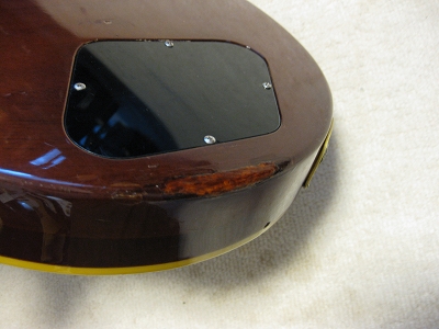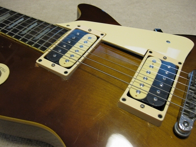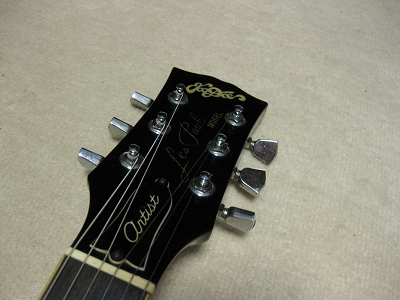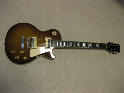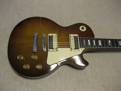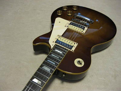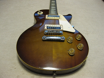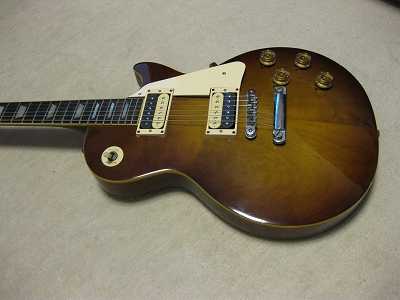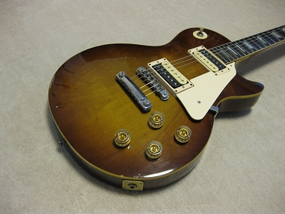 | Joodee (Dyna Made) Les Paul STD Model This is goodr condition Las Paul Model. I rated this guitar as mint- because I have replaced the PUs. When I got this guitar, previous owner changed them already. These are not really good one, therefore, I changed them to the brand new Stwart MaC Golden Age PU. Well, both PU are brand new, still have the plastic cover on. At body bottom, we can see the dent which paint off. The previous owner colored. Also. the abound both PU mount rings, the paints are bit off. Previous owner put the metal mount rings on. He used the wrong size. Anyway, I have put the new mount rings (ESP Brand new) too. Beside these, this is good condition Les Paul. I have only changed the output jack plate. It was cracked. The neck is straight. Truss-Rod is fine and adjustable. The frets are proper condition(has a bit worn). It is not brand new guitar, anyhow. The electric circuit are fine with New PUs, of course Well, try real Japanese Vintage Les Paul Model. It is over 30 year old! The soft GiG bag will be delivered with this guitar. |
