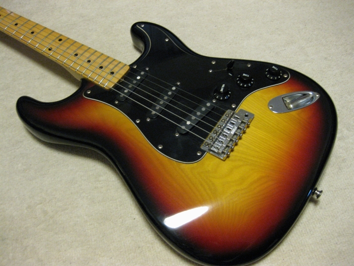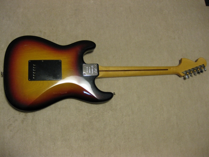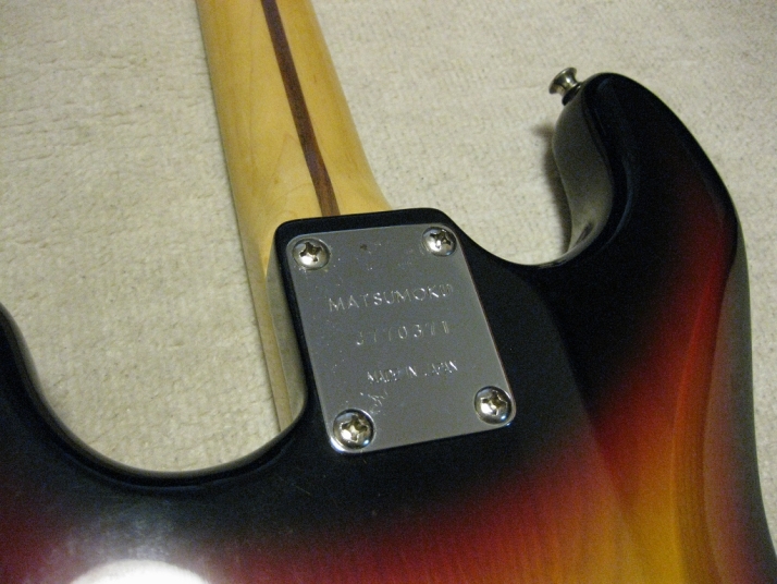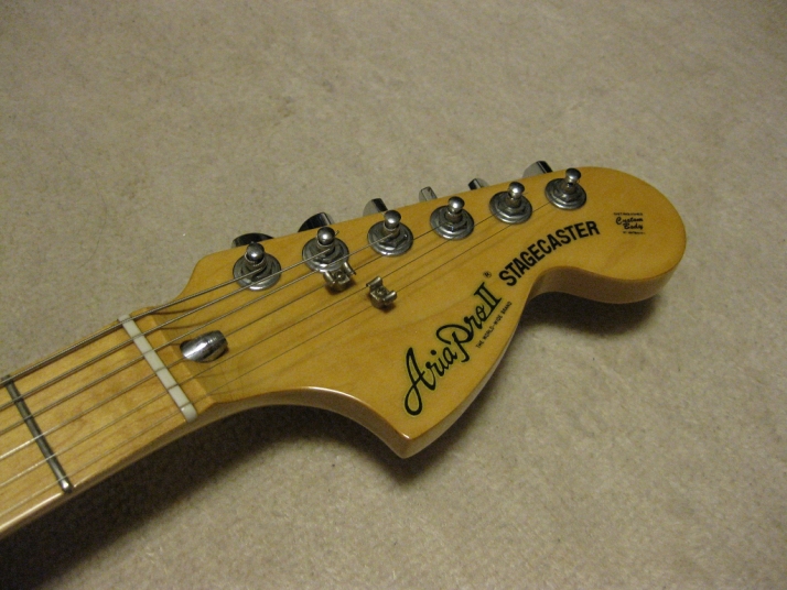 | ARIA PRO-II Matsumoku Made Stratocaster 1977 It is good condition Matsumoku 1977 made Strat replica. The frets are fine a bit worn. The neck is fine. The nut width is approx. 41.7 mm with C grip. The body is SEN (Japanese Ash) 2P with 3.46Kg.. This guitar is almost original condition. The body has a very few dents and scratches. Well, over 30 years old guitar, please do not expect a beautiful brand new guitar. I have same era Fender USA You could play this guitar when you get it. We are going to ship this guitar with used gigbag (not Aria). Please enjoy JV guitar!!! |
