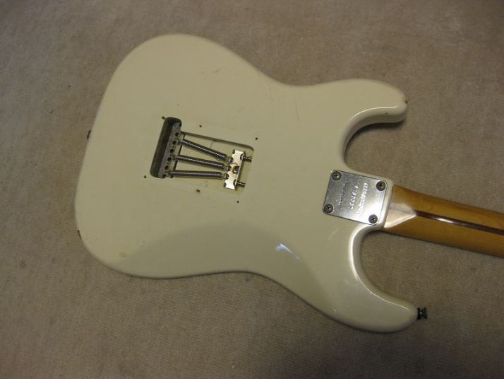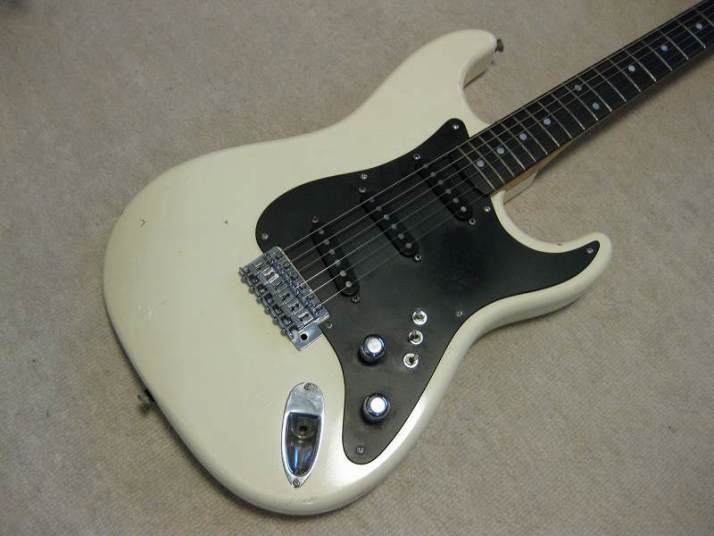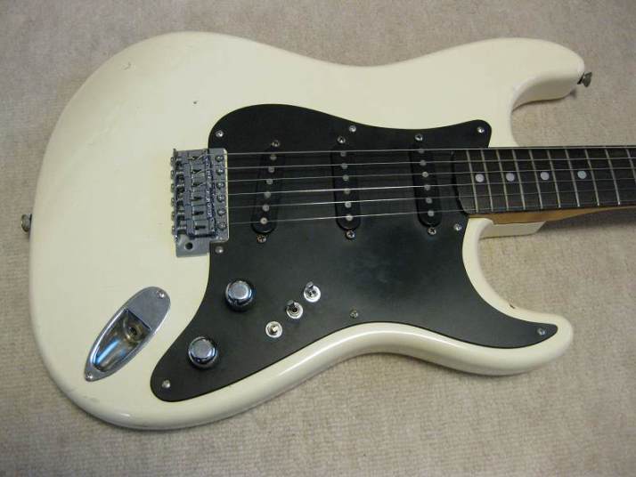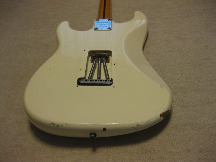 | ARIA PRO-II Matsumoku Made Stratocaster 1979 Jeff Beck Model In late 70's to early 1980, many Japanese guitar manufacturers made the Jeff Beck model replica. His guitar gave a huge impact for many players worldwide. When the players saw his guitar on TV or magazine, immediately, they could see many replica models from Greco, Fernandes, Tokai, Aria, Fresher and others. Well, the wiring is very unique and it made many tones of Stratocaster. Well, this is Aria Pro-II Matsumoku 1979 made. When I got this guitar, the Mini switch (Neck PU) was broken, So, I have changed it to new Miyama ON-OFF-ON switch. I have changed some screws and springs to the New Stainless made screw which we are selling for domestic market as "Music-Trade" brand. I have also changed the Tremolo unit springs. These were rusted. The 1st strings tuner's knob is bit bent. Now, this guitar is fine with good tone. We are going to ship this guitar with used gigbag (not Aria). Please enjoy JV guitar!!! |