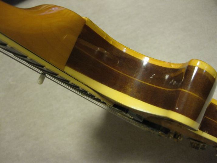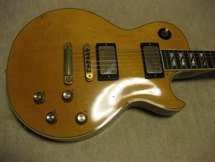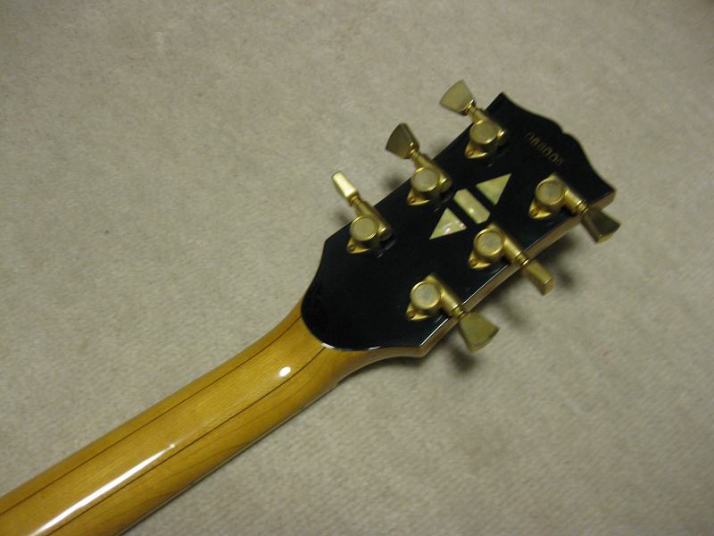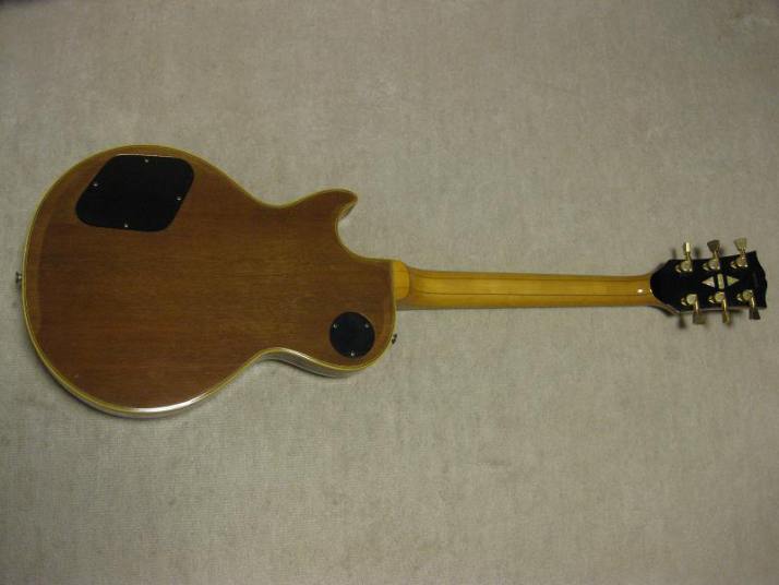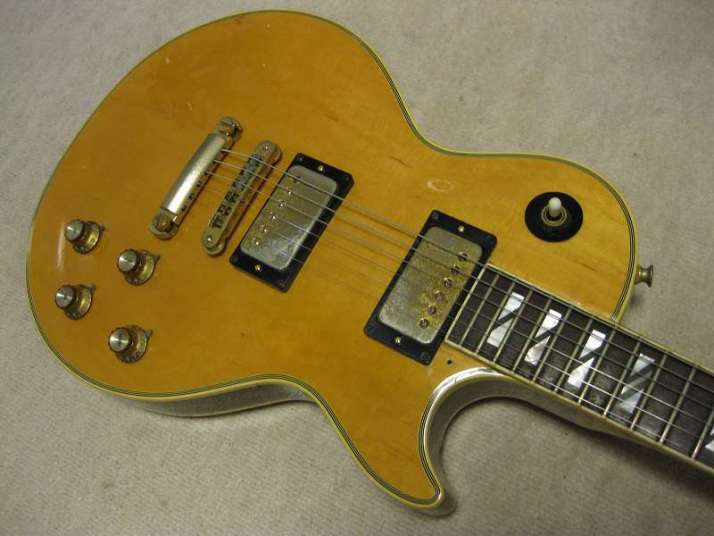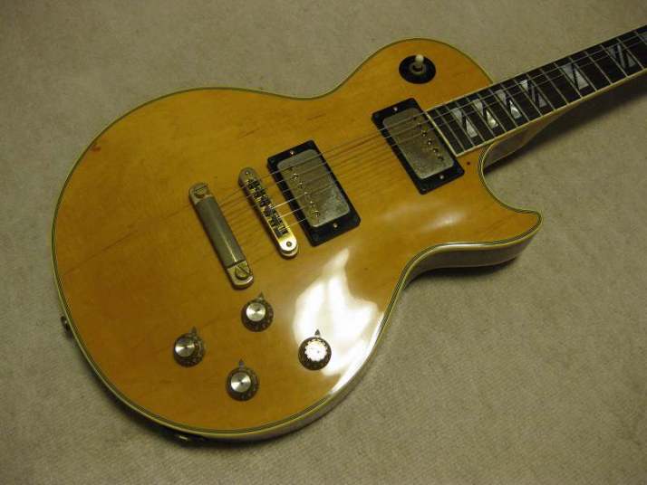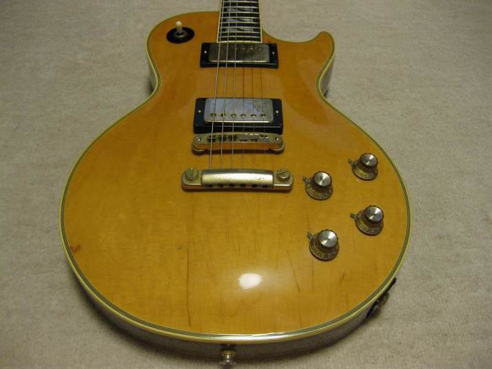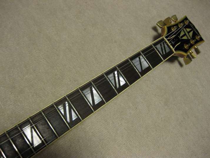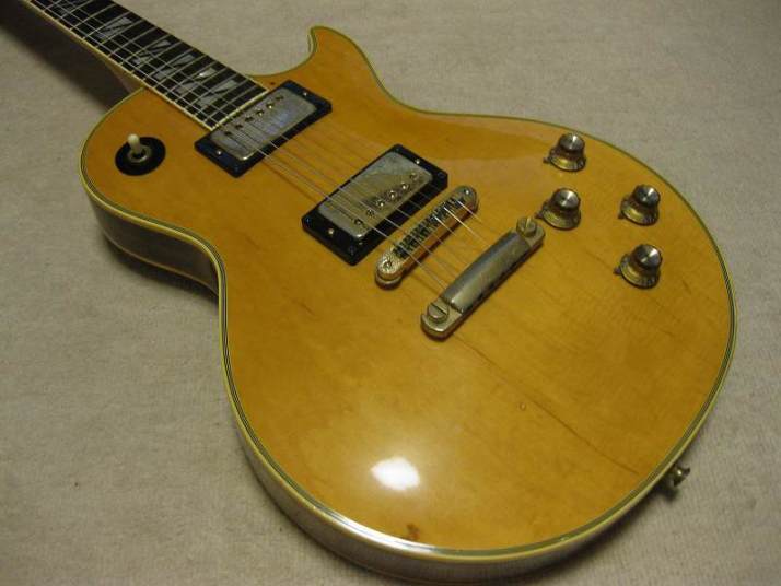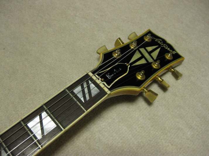 | Aria Pro II LC 1980 Mstsumoku made Les Paul Custom It is Matsumoku made Aria Les Paul Custom model.. I could not find out this model on their old catalog. So, Probably, it is custom made. I've seen many JV guitars, but never seen this model. The condition is fair. I have changed some rusted screws. I hate these to make the trouble with wood. The PU, Pod, Switch and jack were all original condition. The neck is deep joint type (with screw). So, we could estimate this guitar was made 1978-80 time. This is typical Matsumoku construction. The top is Laminated wood (like Maple). I guess. The body is 2PLY (like Pancake) and 2-3P mahogany. It is 4.18Kg weight. The neck is thin type with 43.05 mm nut width . It is straight. Truss Rod is adjustable. Frets are proper condition. I didn't tune this guitar a lot, because I want to keep it as original condition. |