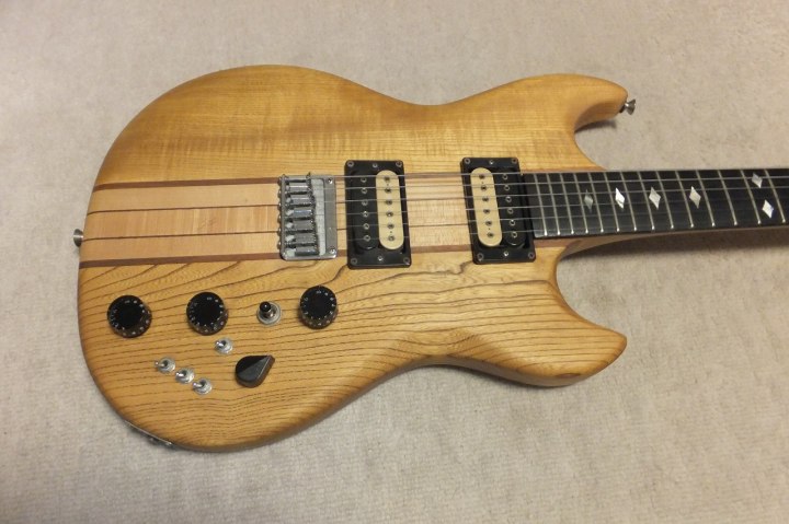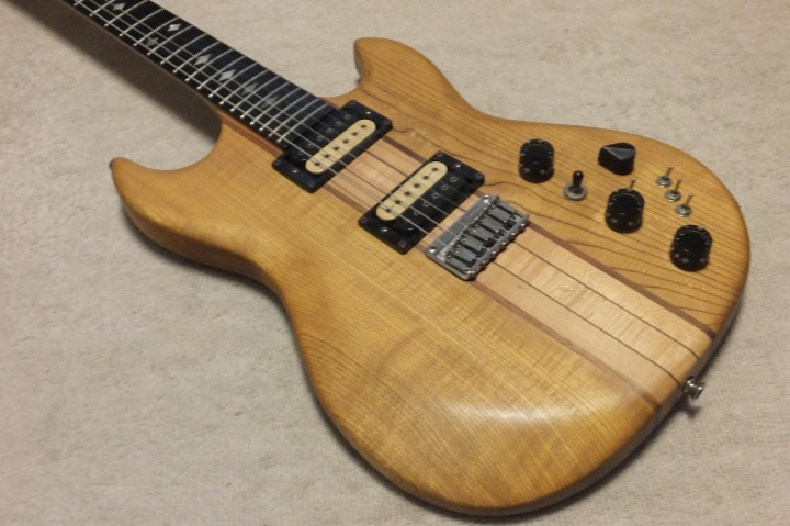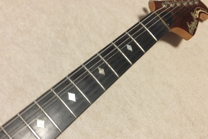 | ARIA PRO-II Matsumoku 1979-81 Made TS-600 Through Neck It is fair condition Matsumoku made TS-600. TS-600 is Aria original designed though neck guitar. They developed this series as standard production of their B.C. Rich replica. According to the Aria people, all music sore didn't interested to sell this series. However, they showed this at the store, the sales were going very well. They said that the electric circuit and though neck construction gave the good impression for the users. This guitar is fair condition. The knobs were replaced by previous owner. The nut is brass now.The neck is maple + Maho with C grip. The nut width is 43.5mm. The frets are proper condition. The body should be SEN. It is 3.58Kg. The top coat (paint) were maybe peeled off (I guess undercoat is still remain). So, it feel like the solid wood. The electric parts are fine. You could play this guitar when you get it. The guitar will be shipped with used Gigbag (not Aria made). |