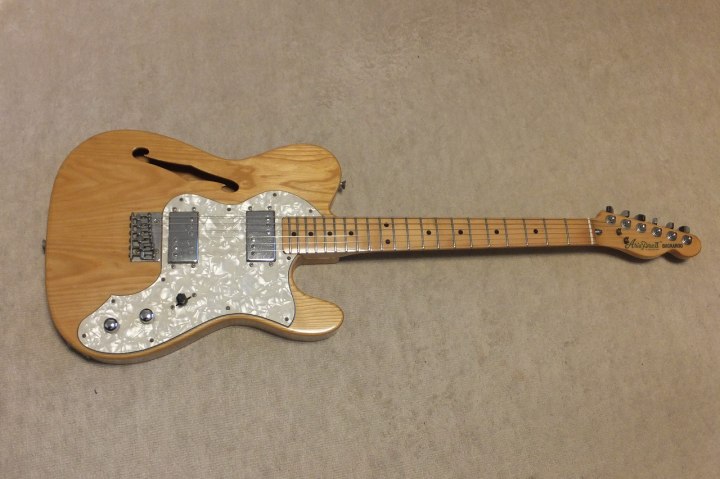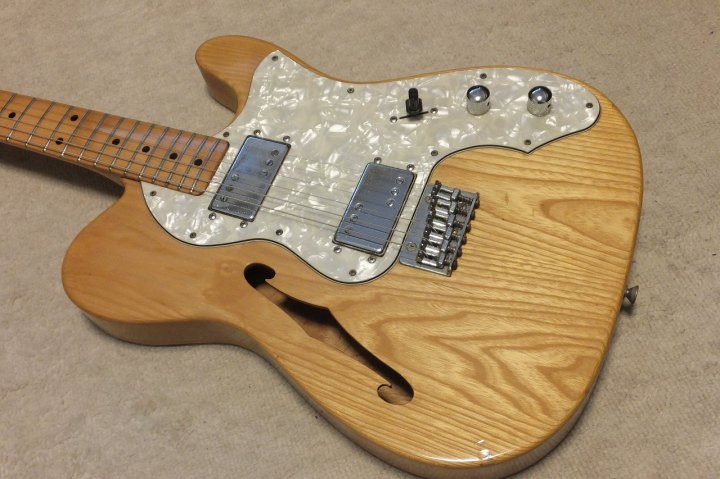 | ARIA PRO-II Matsumoku 1977 Telecaster Thinline Model It is mint condition Matsumoku made Tele Thinline model. I is very difficult to find out the Aria Matsumoku made good condition telethin line model. We could see solid body more and easy to get. This is 77 made. sort of golden time of JV guitars. Many MFR made good replica. This is one of these and pretty good condition. The body is Japanese ash (Sen) and maple 1P neck. Pretty smooth C grip neck. The nut width is 42mm. It is 3.57 Kg weight. The tone is pretty sweet. I like it very much. This guitar can be used even for Jazz music. We have checked and adjusted this guitar, therefore You could play this guitar when you get it. The guitar will be shipped with used Gigbag (not Aria made). |
