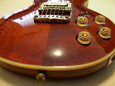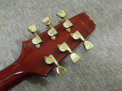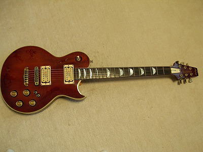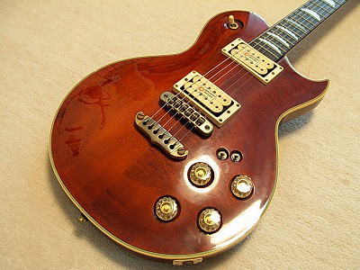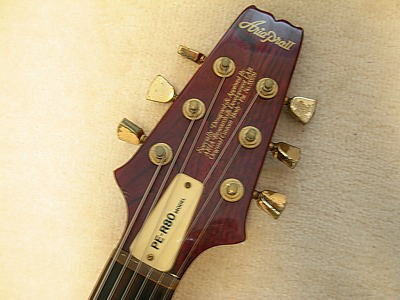 | Aria Pro II PE-R80D 1981 made MIJ ARIA Pro II stopped the Gibson and Fender Replica and concentrate to develop the own design guitars. PE series are most famous line of ARIA Pro-II. It has a patented neck heelless cutaway ARIA-Pro II is still producing the PE series as their main products. It means that the design of this guitar is one of perfect design. PE-R80 production started around 1981. This is PE-R80D, the body material is a different from standard R80. PE-R80 has both sized arched process. The body is maple + Maho + Maple. But R80D is Maple body type. So the body weight is pretty heavy. Also Pick up is Dimarzio as standard. Aria said that the originally R80 was made by all maple body. However, endorsers said it is pretty heavy. They also like Les Paul tone. Then, Aria added Maple +Maho + Maple. Therefore, D type is actually original of R80. The sound, is pretty heavy, more heavy than standard R80. I like it very much. 2 mini-swtiches could make the Humbuckers as single. It is quite good for rhythm stroke. It's great ! Try Aria Pro II Vintage. It is getting pretty hard to find out the good condition old PE !This is a guitar, I would like to keep. |