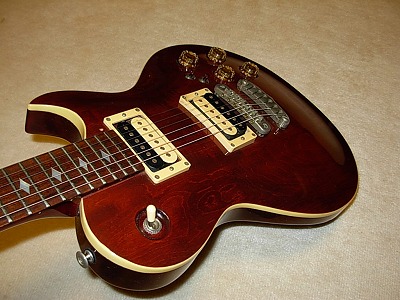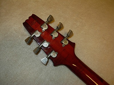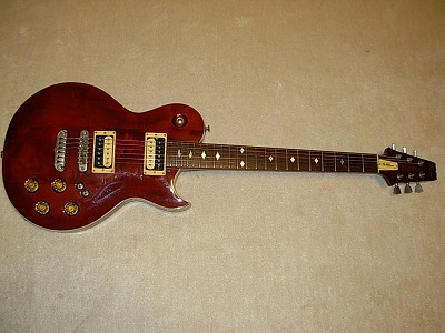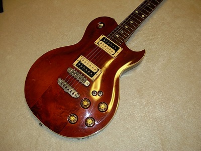 | Aria Pro II PE-R60 1981 made MIJ ARIA Pro II stopped the Gibson and Fender Replica and concentrate to develop the own design guitars. PE series are most famous item of ARIA Pro-II. It has a patented neck heelless cutaway ARIA-Pro II is still producing the PE series as their main products. It means that the design of this guitar is one of perfect design. PE-R60 production started around 1981. I guess this guitar should be earlier production. It is great condition as over 25 years guitar. I have checked all. There are not serious dents. On the body there are small scratches(Please refer the photos). Electric circuit are fine, neck and frets are fine too. The metal parts are fine, not like brand new guitar, but it is still good condition. The sound, I like it very much. 2 mini-swtiches could make the Humbuckers as single. It is quite good for rhythm stroke. It's great ! Try Aria Pro II Vintage. It is getting pretty hard to find out the good condition old PE ! The softcase (second hand) will be shipped together with this guitar. |