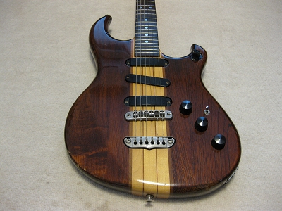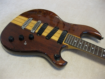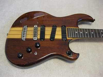| Aria Pro II RS-600WA 1981 made MIJ ARIA Pro II stopped the Gibson and Fender Replica and concentrate to develop the own design guitars. RS series are developped by the concept of Alembic Guitar, Aria officials said. This RS model is passive circuit type. Therefore, Middle PU is wired as mix sound with Neck and Bridge PU. RS series have the active circuit type. The RS-850 has the Hum-Canceller looks like middle PU. I never try 850 type, but it should be like Alembic type sound. The guitar is good condition. The neck is straight. The frets are fine too (a bit worn). The electric circuits are fine. There are several dents on the top, but not really visible. The sound, I like it very much. A bit different from Strat. It should be RS sound. Try Aria Pro II Vintage. It is getting pretty hard to find out it with good condition. |