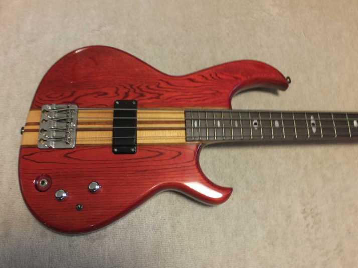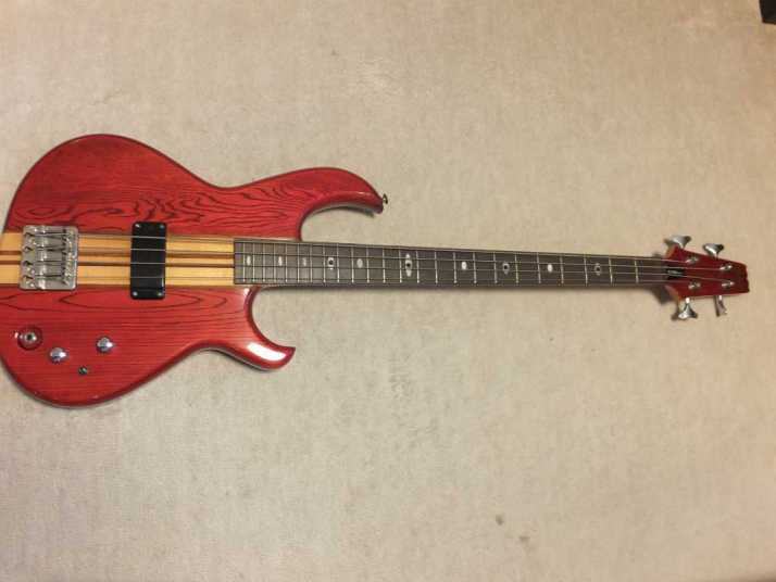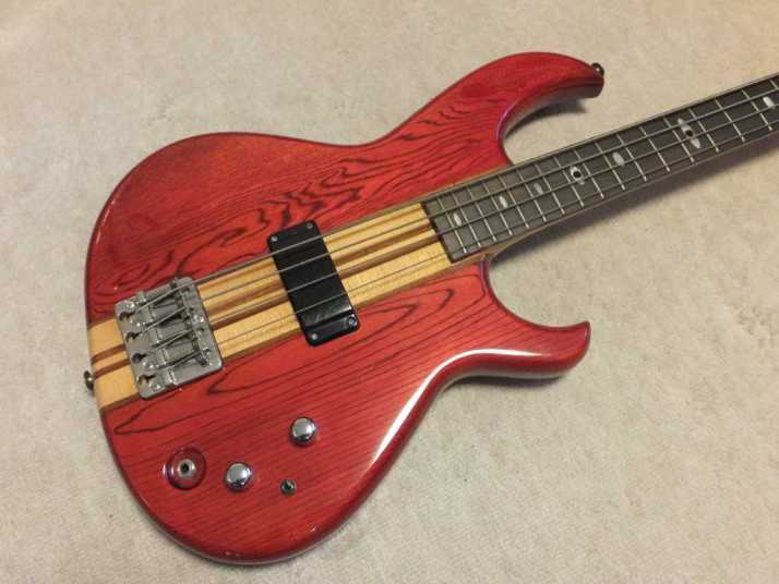 | Aria Pro-II Matsumoku Made SB-R60 This bass is 1982 Matsumoku made SB-R60. It is pretty good condition. The neck, frets and electric circuits are all proper condition. The brass nut width is 43.3mm. The neck shape is like Precision bass. The bridge is a bit rusted, but good weight brass made. There areno so many dents. Weight is 4.46 as a bit light weight of Aria SB average. I have collected many SB before. This bass has several dents and scratches (spoecially back). However, it is still good looking But do not expect the brand new bass. This is over 25 years old bass. I have only changed the control knobs because of missing. It is very good tone. Aria SB series are currently made in Korea except some high grade series. I would say early 80's JV made is much good quality. We are going to ship this bass with used Soft Carrying case. Well, enjoy JV bass ! |
