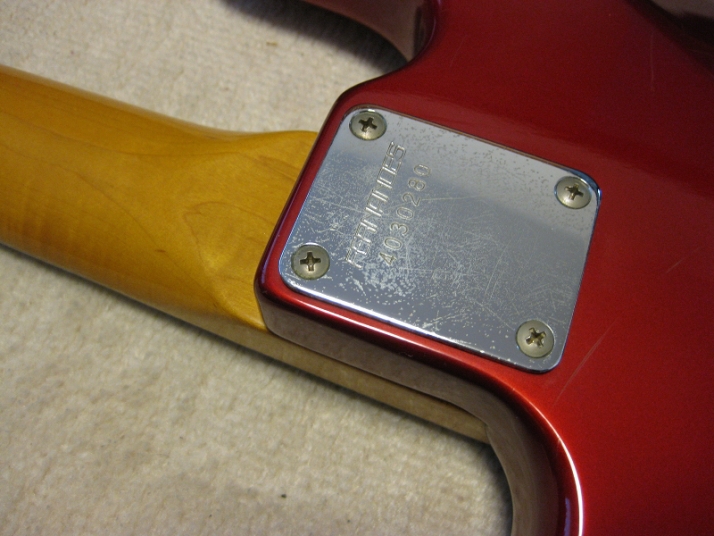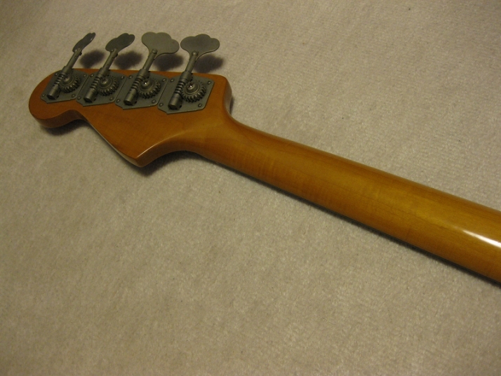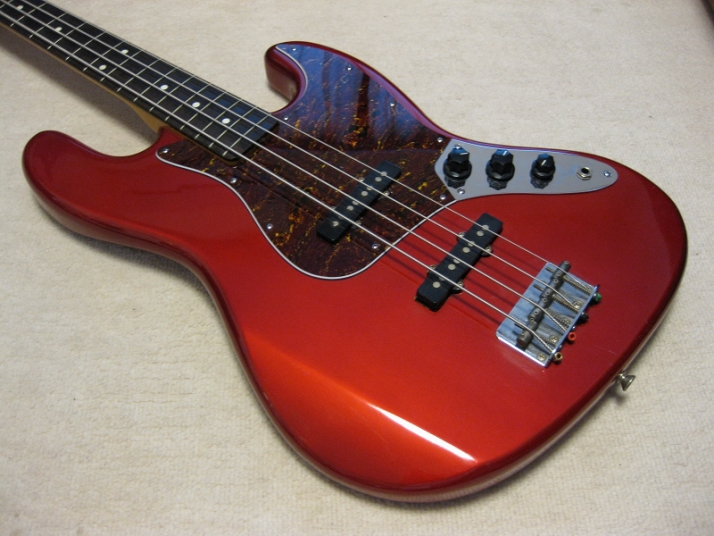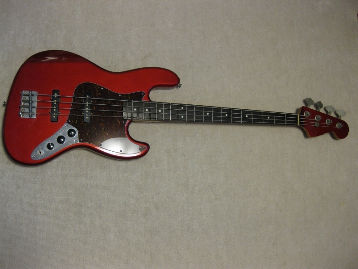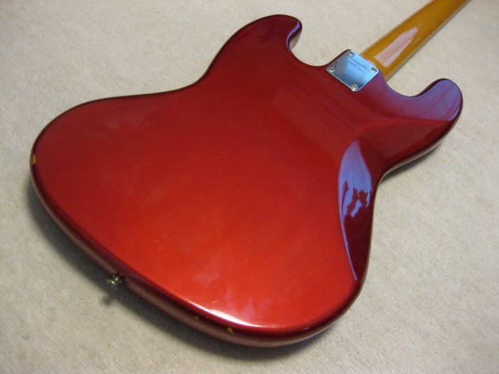 | Fernandes Revival Series Jazz Bass early 80's made This bass is very rare color Fernandes Revival series Jazz Bass. We could see many sun burst color, but I didn't see many color like this. It is very regretfully but the logo marks were erased. The revival series has removal logo mark. I remember that many users took off and put the Fender Logo mark on. Anyway, this bass hasn't got the logo mark. Beside that, It is good condition. The neck, frets and electric circuits are all proper condition. Currently the neck is set as slightly up-bow. You could adjust it by truss rod. The nut width is 40.95mm. The bridge, metal tuner knobs are a bit rusted as vintage looks. There are several visible dents. But it is not really bad looking. Please refer the pictures. Weight is 4.32 as standard weight of JB. I'm not sure the body materials. But It should be alder 3P body. Well, it is good tone bass! We are going to ship this bass with used Soft Carrying case. Well, enjoy JV bass ! |