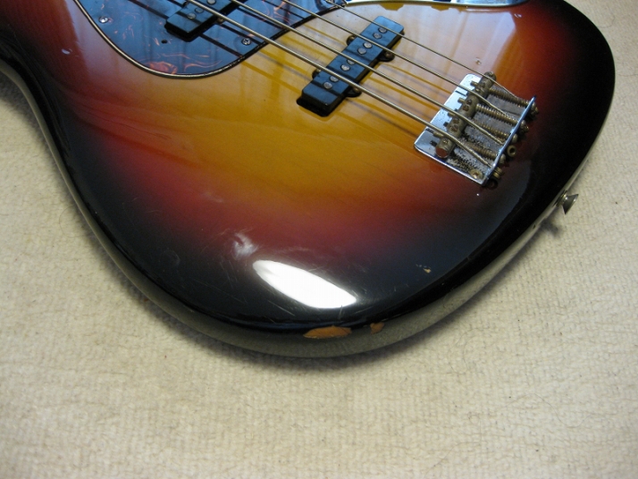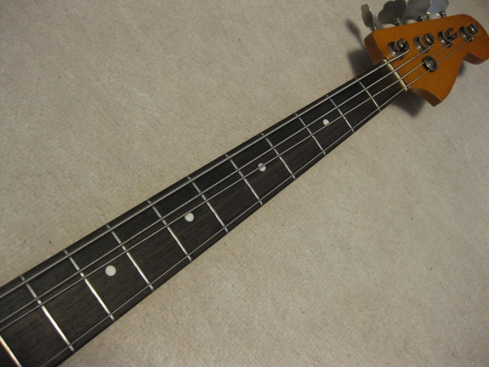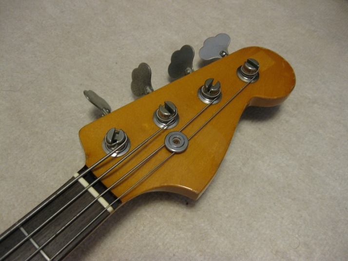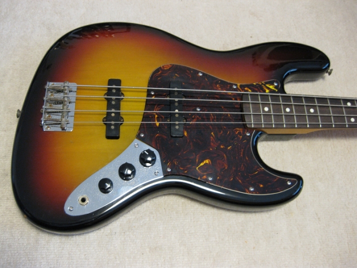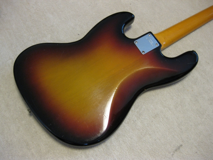 | Fernandes Revival Series Jazz Bass early 80's made This bass is Fernandes Revival series Jazz Bass. But very regretfully, the previous owner took off the logo mark. It is actually proof this is Revival series. It is easy to peel off the logo mark. The neck is straight, frets and electric circuits are all proper condition. But the truss Rod is almost 100% fastened now. I think the neck is stable condition. Therefore, not necessary to adjust and maybe not bow in the future. The nut width is 38mm. There are several visible dents. But it is not really bad looking. Please refer the pictures. Weight is 4.38Kg as standard weight of JB. I'm not sure the body materials. But It should be alder 3P body in this year of production.. The bridge, metal tuner knobs are a bit rusted as vintage looks. Well, it is good tone bass! We are going to ship this bass with used Soft Carrying case. Well, enjoy JV bass ! |