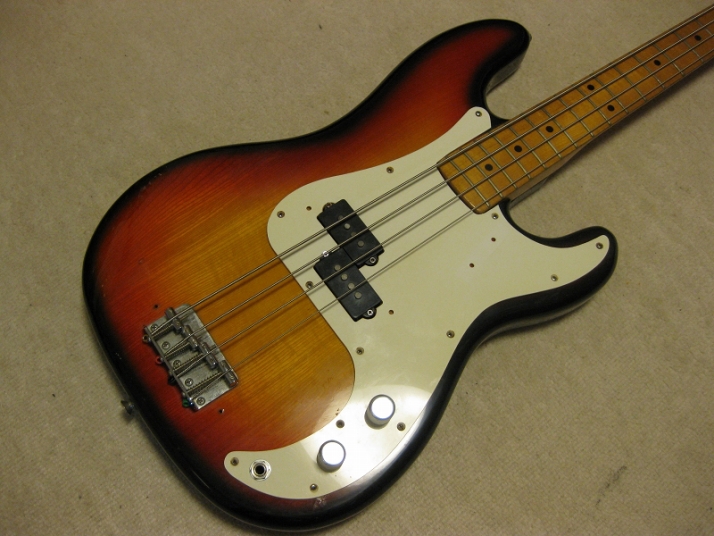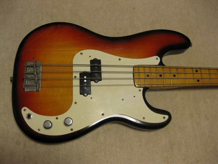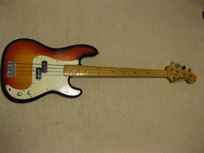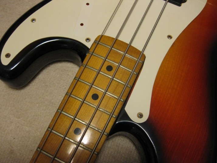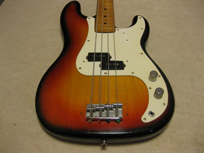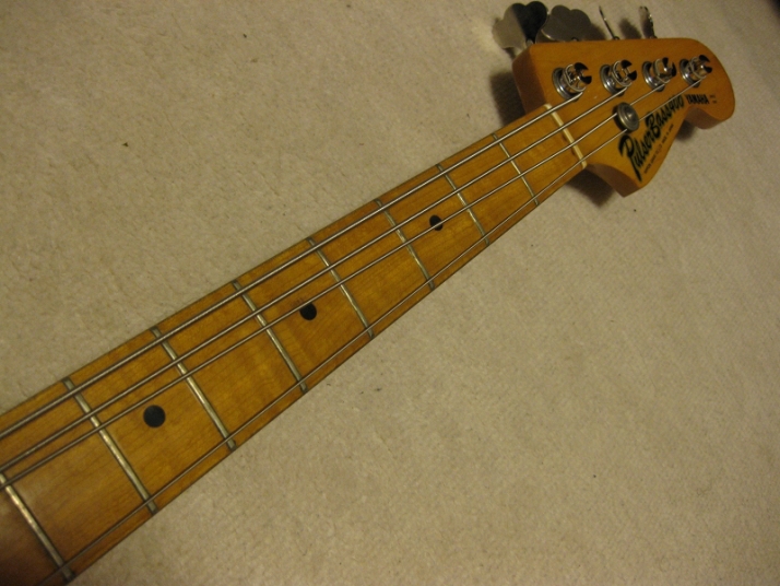 | YAMAHA Pulser Bass Precision Model Late 70 Made Yamaha Pulser Bass made by Kasuga Gakki in 1976-78. The previous owner changed the pick guard. So, behind the pick guard, we can see extra screw holes. When I get this bass, the electric circuit was damaged. So, I changed the Potentiometers, Switchcraft Jack, Belden wire and Orange drop newly. The tuner was missing. I replaced New Gotoh GB25 tuner. The neck is straight and no twisting. The truss rod is adjustable. The frets are proper condition (a bit worn). The neck shape is like C as Precision bass. The Nut width is 40.3mm The Sen 2PLY 2-3P body with 4.42g. It is good looking body. There are not really dents and scratches. The metal parts are not really rusted. These looks good. As 30 years old bass, this is generally good condition bass. Well, this is not full original bass, but many new parts on. We are going to ship this bass with used Gig Bag. Please try JV Precision Bass! |