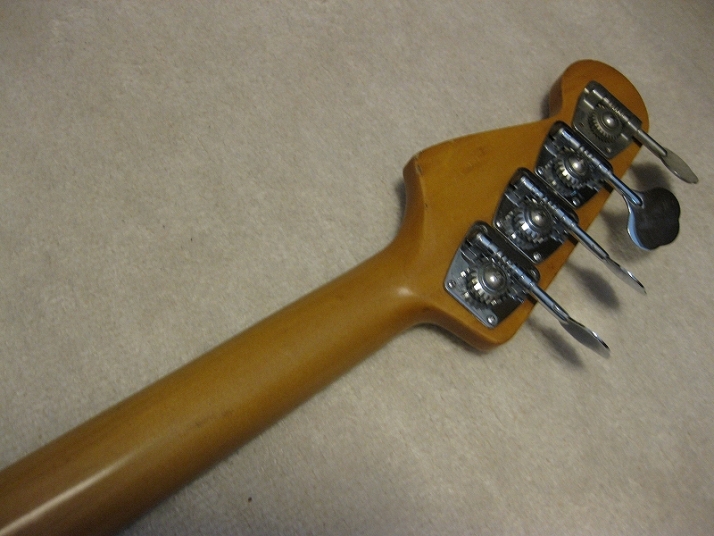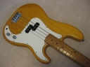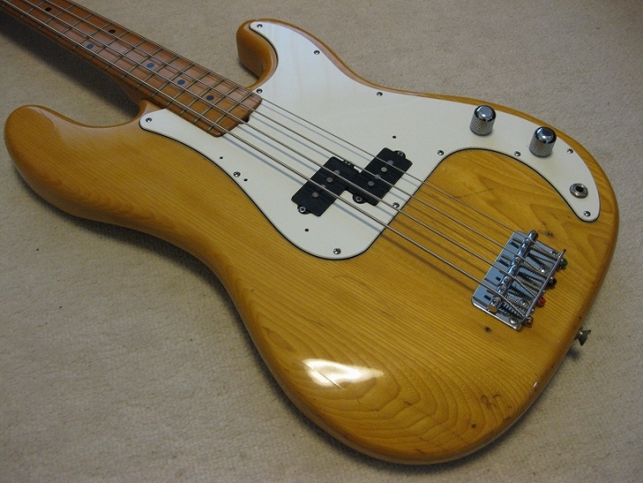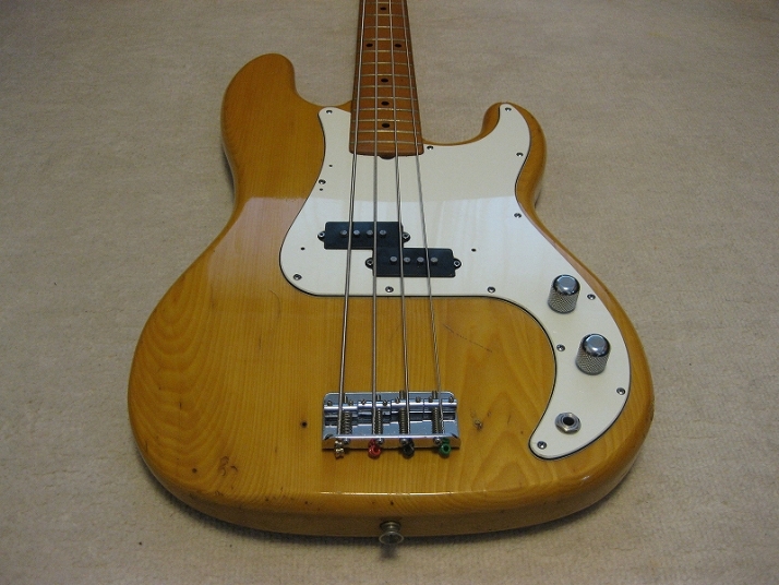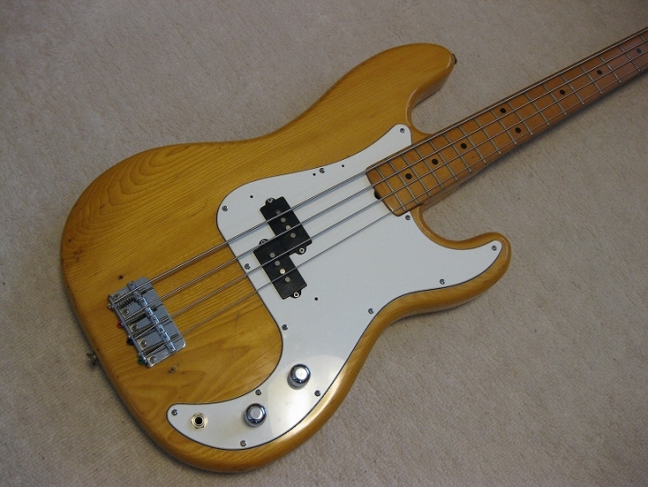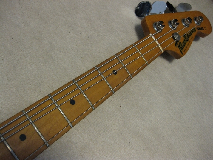 | YAMAHA Pulser Bass Precision Model Late 70 Made Yamaha Pulser Bass made by Kasuga Gakki in 1976-78. When I get this bass, the strings were off, and the electric circuits were damaged. So, I changed the Potentiometers, Switchcraft Jack, Belden wire and Orange drop newly. The neck is straight and no twisting. The truss rod is adjustable. The frets are proper condition (a bit worn). The neck shape is like C as Precision bass. The Nut width is 40.3mm The Sen 2PLY 2-3P body with 4.65g. It is good looking body. There are not really dents and scratches. The metal parts are not really rusted. These looks good. As 30 years old bass, this is generally good condition bass. Well, this is not full original bass, but many new parts on. We are going to ship this bass with used Gig Bag. Please try JV Precision Bass! |