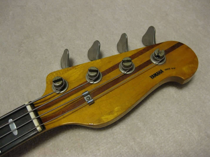 | YAMAHA BB-1200 Original designed bass Well, many people look for the good condition BB-1200. This is good condition BB-1200, however, I rated Mint-m because the logo mark was taken. There is only "Yamaha" mark left. Of course, everybody understood this is BB-1200. The neck is straight and no twisting. The truss rod is adjustable. The frets are proper condition (a bit worn). The neck shape is like C. The Nut width is 43.5 mm The wood material is Maple + Maho with Ebony Finger Board. As you know, this is though neck body. The body is Alder, It is 4.57 Kg weight. It is good looking body. There are not really dents and scratches. As I said, only Logo mark...!!! The metal parts are little bit rusted. Well, pretty old bass. I could not specify the production year of this bass. BB-1200 was made between 1977-1983, anyway, about 30 years old bass. We are going to ship this bass with used Yamaha Original Gig Bag. Please try JV Precision Bass! |