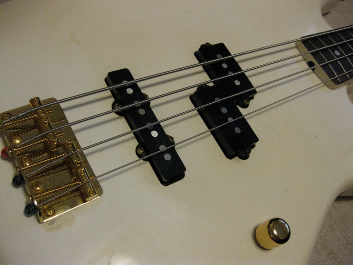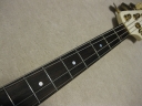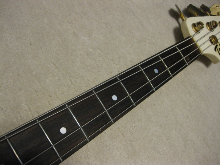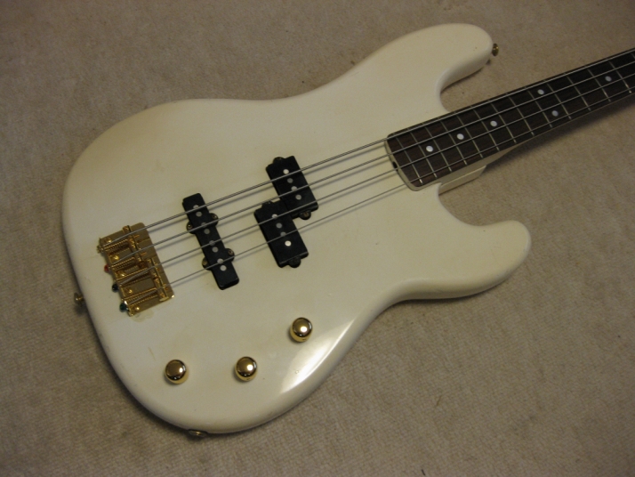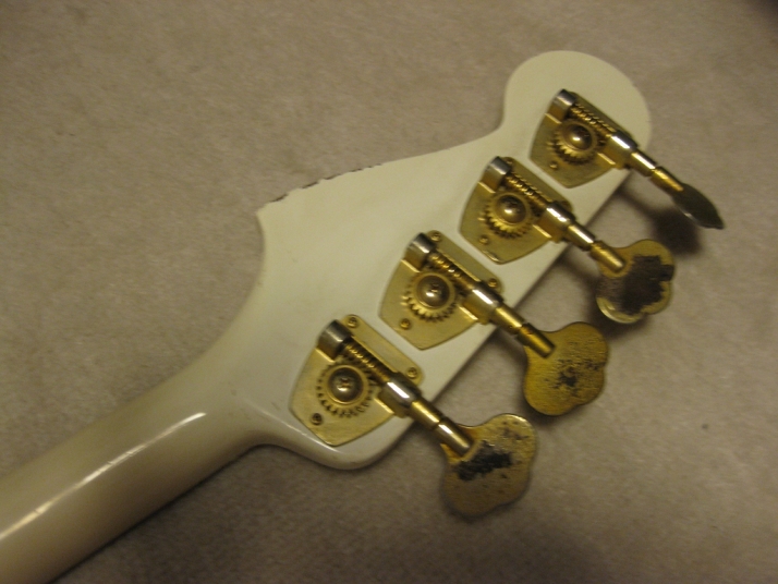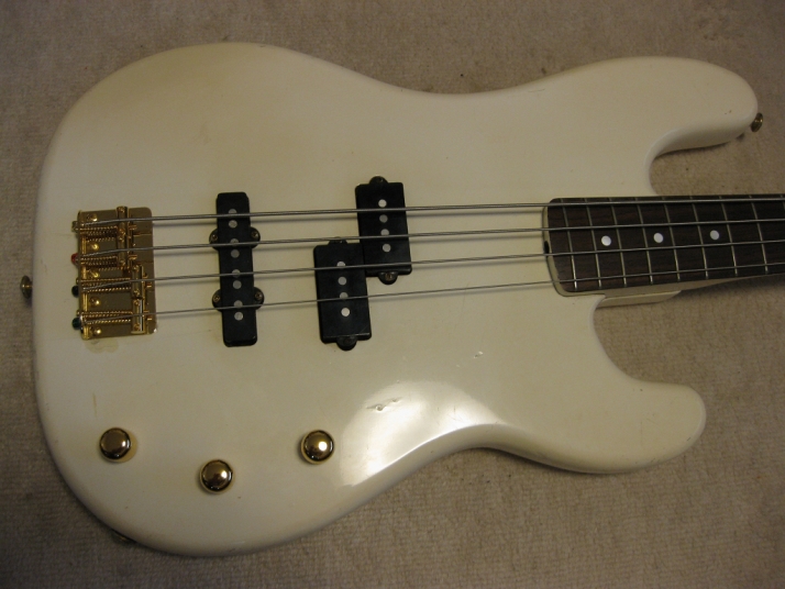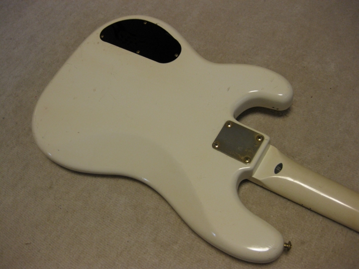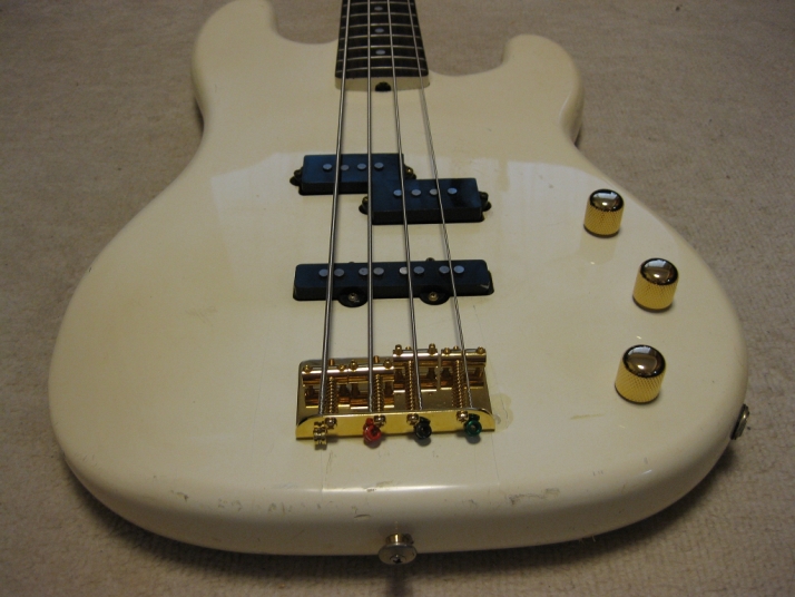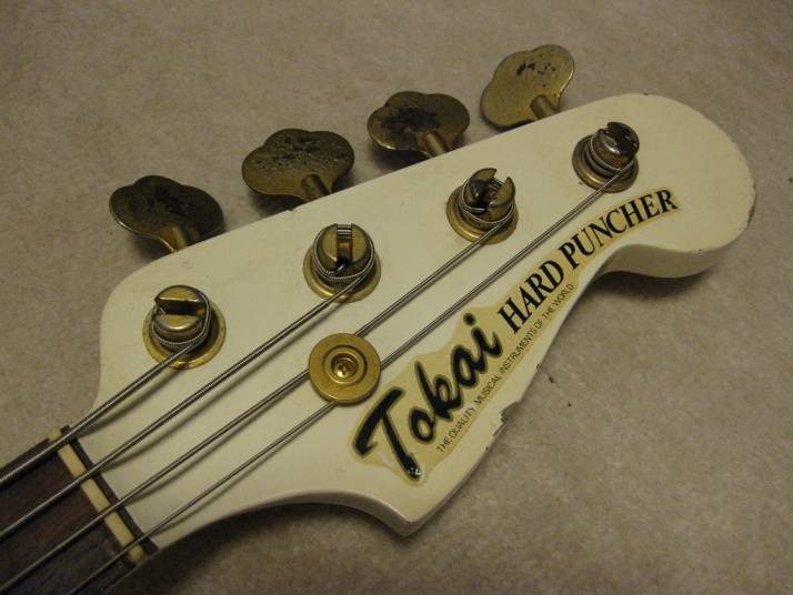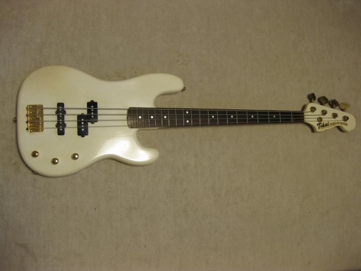 | TOKAI early 80's made PJ Bass I'm not sure the modeling of this bass. It's probably PJ-55 or TPJ-55. We could see the stocker behind neck. In 80's, all manufacturers offered PJ type bass. I like PJ type mixed sound. Well, mostly, the output of each PUs are slightly different. So, I like mixed tone. It is not great condition. Well, like 30 years old looks. Many scratches, paint cracks and dents are on the body. Please do not expect the beautiful brand new bass! I have changed the electric circuits with brand new pot, capacitor and knobs. Also changed the bridge to new gold one. The original one is too rusted and can't adjust the screws. The original position of bridge was not fine.I have moved the position a bit to center. The neck and frets are proper condition. The adjusting rod is workable. The neck is maybe Maple 1P with 39.4 mm nut width. The body should be SEN 3P wood. The weight is 4.01Kg It looks not fancy, but the sound and play are fine. I didn't change the tuner even these were rusted. If I change it to new one, the price will be high. So, if you want to do it, please do it by yourself. I hope, you would enjoy this good JV bass! The used Gigbag will be delivered with this bass. |