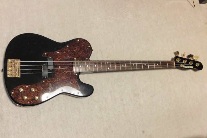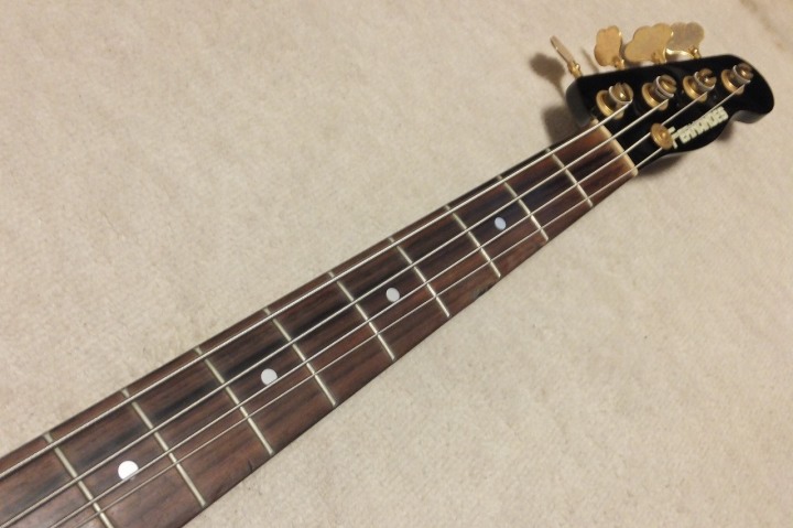 | Fernandes Telecaster shape Bass TEB-70 Late 1980 Made This bass was made in late 80's. So 25 years old around. Fernandes concentrated to produce the artist model that time. One of them reason, here, we had a rock band booming that time. This bass was made for Mr. Watanabe, the bassist of "Personz" - Japanese Rock or Pop band.(I don't know so much) I got this bass without the above detailed. I just felt it is good looking and good design. When I get this bass, the bridge, pick guard were broken. So, I left this bass for a long time. Recently, I set it up again. So, the pick guard are made by us. The bridge was replaced by Gotoh Brand New. Knobs, jack plate and strap pins are new. I didn't touch the tuner, neck plate and circuit. It is pretty good looking. The body is maybe Ash (Maybe 3P? No idea) and probably Maple 1P neck. I could not find out the original catalog of this bass. It is 4.38Kg weight. Well, the nut width is 42.2 mm with Fender scale neck. The neck is ,of course, straight and truss rod is fine. We can see small dents but not so serious. I should notice you under pick guard, below neck pocket we could see paint crack. It is under pick guard, anyway. You could create many tones because of active PU function. It has Bass/Treble and other (I could not specify the function). From the Heavy to light tones, you could make it. Well, if you like a bit different bass, this should be good choice. We are going to ship this bass with used Gigbag (not original). Enjoy Japanese made Bass! |