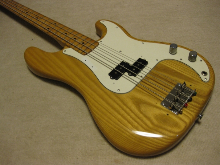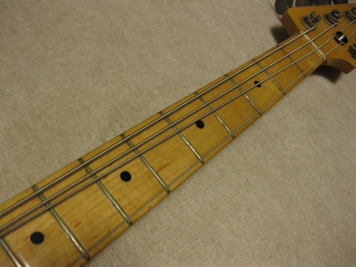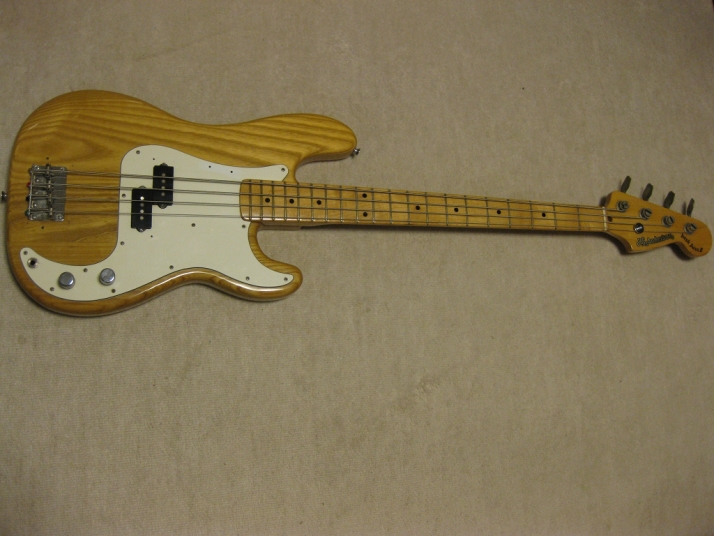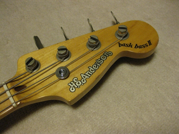 | H.S.Anderson H.S. PB70 Bask Bass II As you guys know, H.S. Anderson was made by Morris guitar factory under conduction of Mr. H. Shiino. I have several H.S. Anderson guitars. This is a first bass for me. Generally, H.S. Anderson used high quality woods. This bass was made by good pattern ash wood. I thought the sound is not really different from other JV basses. However, after I checking and adjusting, I have found out this is really good tone bass. I don't know why... Well, the condition of this bass is almost perfect. We can see a bit rust on tuner knobs. That's all. Other metal parts, electric wiring, neck, frets are all fine. The body hasn't got serious dents and scratches. I forget to tell you that I have changed the output jack to switchcraft. The White ash body is so heavy. It is 5.14Kg. The neck is thick as precision bass. The nut width is 42 mm. The string action is set standard height now. Maybe , we could not find out this condition H.S.Anderson bass again. I would keep this bass. But if you are interested in, just ask us. |