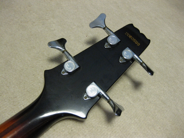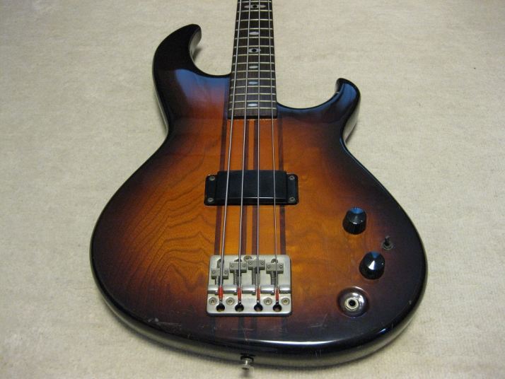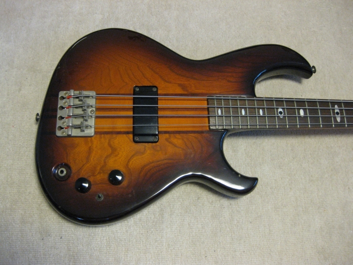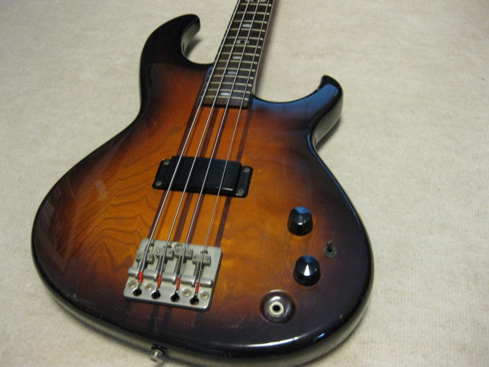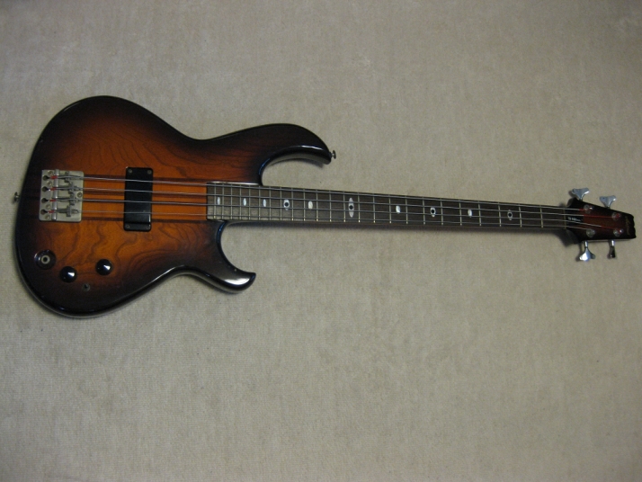 | Aria Pro-II Matsumoku Made SB-R60 This bass is 1982 Matsumoku made SB-R60. It is pretty good condition. The neck, frets and electric circuits are all proper condition. The brass nut width is 42.6mm. The neck shape is like Precision bass. The bridge is a bit rusted, but good weight brass made. There areno so many dents. Weight is 4.35 as a bit light weight of Aria SB average. I have collected many SB before. This bass is good. But do not expect the brand new bass. This is over 25 years old bass. It is very good tone. Aria SB series are currently made in Korea except some high grade series. I would say early 80's JV made is much good quality. We are going to ship this bass with used Soft Carrying case. Well, enjoy JV bass ! |