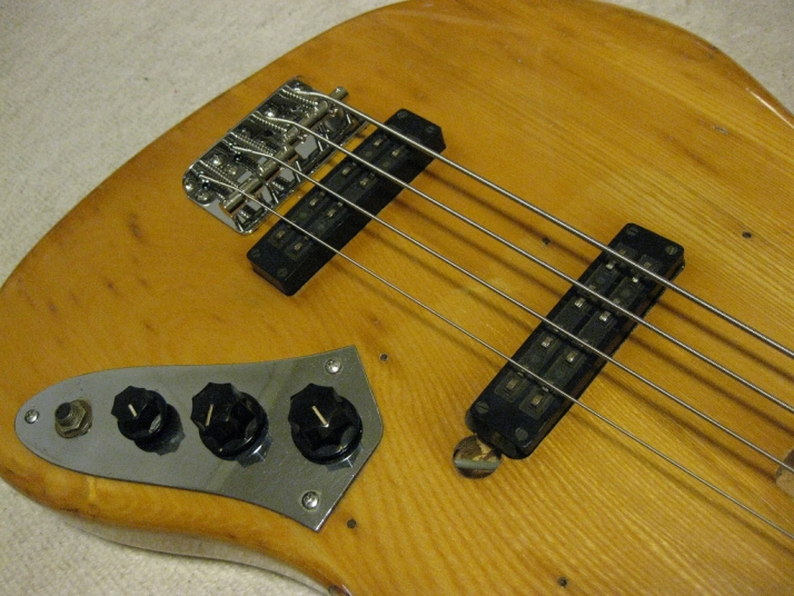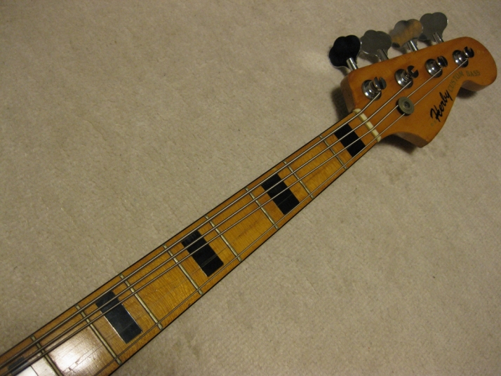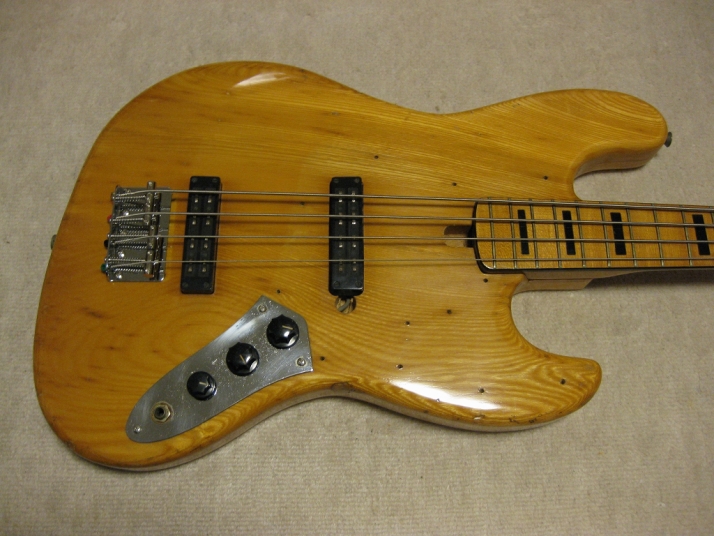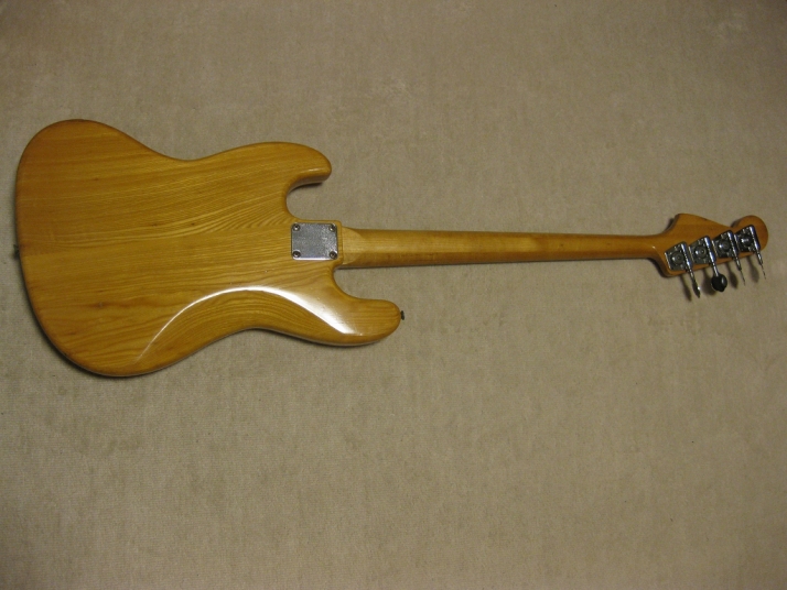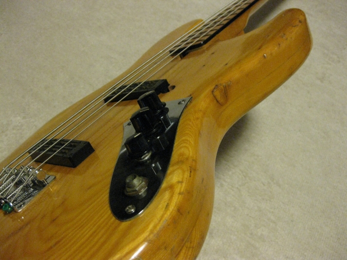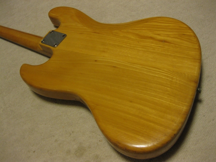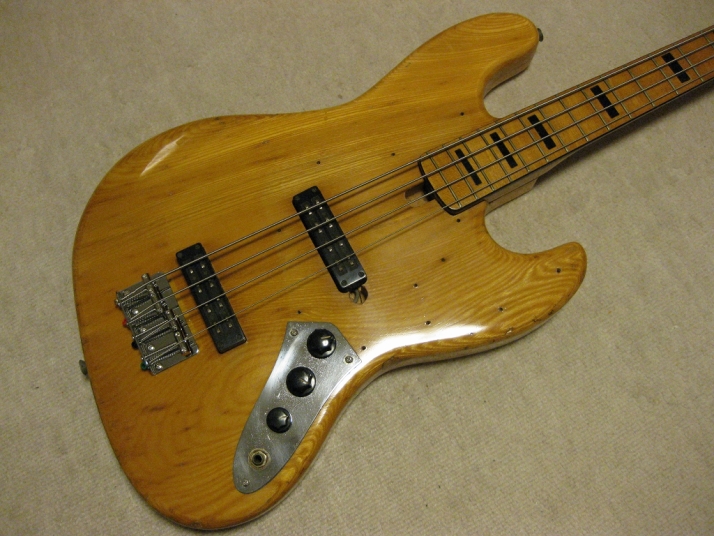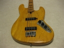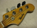 | R.K. Herby Jazz Bass Well, R.K. Herby is the collaboration products between Roland and Kasuga in mid. of 70's. I'm not sure the reason why. Anyway, this brand was made made before their Guitar Synthesizer GR series. I could not find out the catalog of R.K. Herby. However, I knew that they made the Strat, Les Paul, ES-335, TV and some bass replica. Their Les Paul was pretty good-looking, I remember. The body was made by Kasuga. The electric components were developed by Roland. Well, the pick up of this bass is a different design from Fender type pick up. The tone ...Well, I felt that the balance of neck and bridge PUs are not really great. I like the neck PU tone. I have changed the bridge to the new one. The original one is so rusted. Probably, the body is sen 2PLY and 3-4P body just like Yamaha Pulsar bass. It is 4.45Kg. The neck is pretty much like JB shape. The nut width is 36.85mm. The frets are a bit worn. Well, this bass is the history teller. This is not sales item. However, if you are interested in, just contact us. |