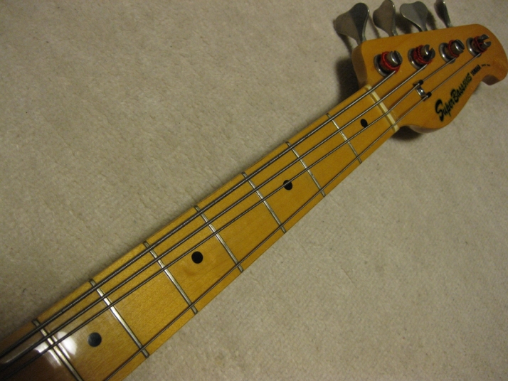 | YAMAHA SB-500S MIJ Bass with original hard case Got another SB-500S. It has the original Yamaha hard case. This model made by Yamaha between 1979-82. Yamaha also started the famous BB series. Both of them were Yamaha original designed. Many Japanese professional players used these series. SB series are 2 pick up type. Maybe, Yamaha put the concept like J-Bass. BB was like P-Bass at the beginning. (One by one, these model changed same series...as BB) The difference between SB-500 and SB-700 is body material. SB-700 is alder body and inlays. SB-500 has Nato body. The hardware is same specification. There are not many scratches and dents. It is better looking than other my stock. The frets were a bit worn, but still O.K. and the neck is fine. The sound, pretty much like Jazz Bass. But the neck is like PB. It is pretty thick with 44 mm nut width. Nato body is providing us a heavy bottom tone with total weight 4.37Kg The knobs are not original. It can be used for heavy bottom Rock !!! This bass is 30-32 years old bass. The body is dried very much. We are going to ship this bass with Yamaha original hardcase. Please try JV Yamaha Bass! |