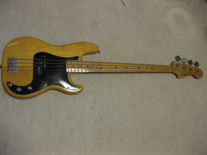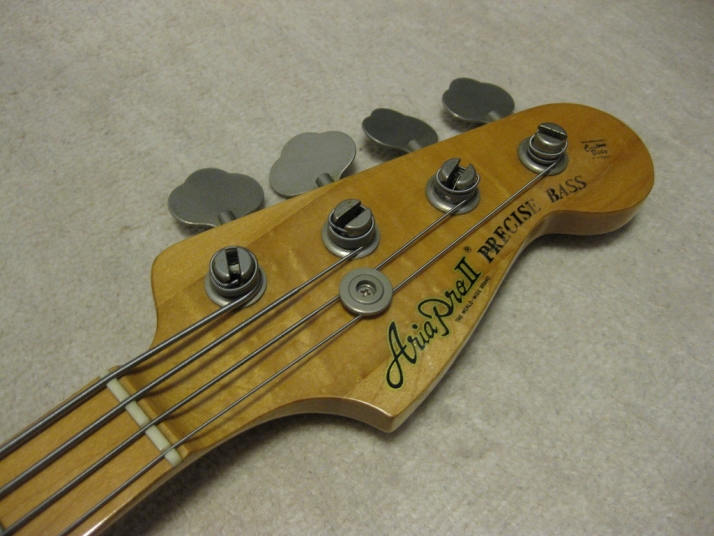 | Aria Pro-II Matsumoku '77 Made PB-500 This is 1977 Matsumoku made bass. The condition of this bass is proper as vintage bass. The metal parts are rusted. I normally change all screws by repairing, But I just keep them. The neck and electric components are O.K. The neck is 3P (only head, mostly 1P) straight and frets (are bit worn) are fine. The truss Rod is still adjustable. The nut size is approx. 40mm. The body should be Sen 3-4P with 4.35 Kg weight. The body condition is as shown on picture. Well, it is so so looking bass as 30 years old. There are small dents and scratches. However, these are not really visible. We have checked all functions. So, you could play when you get this bass. We are going to ship this bass with used Soft Carrying case. Well, enjoy JV bass ! |