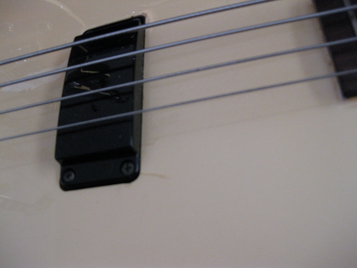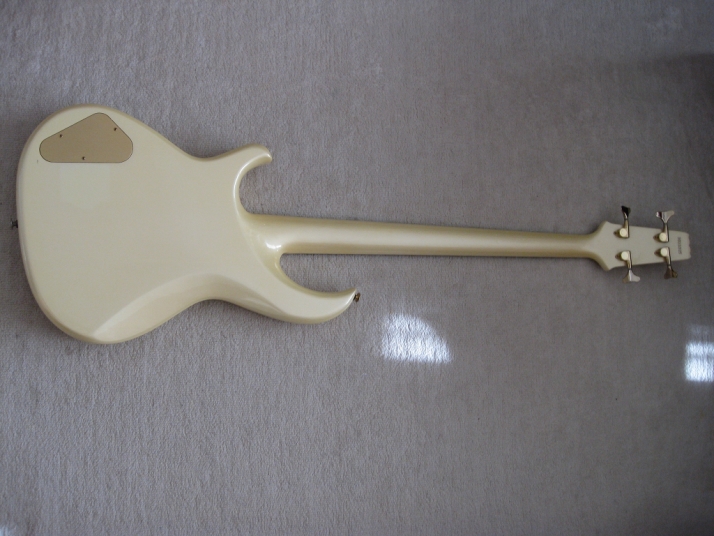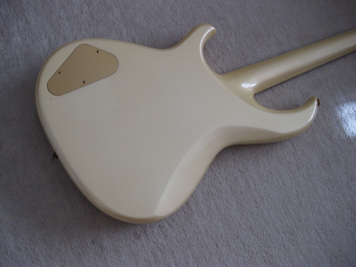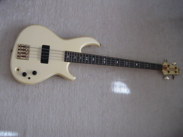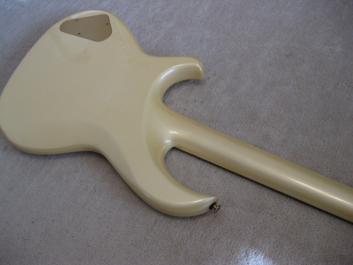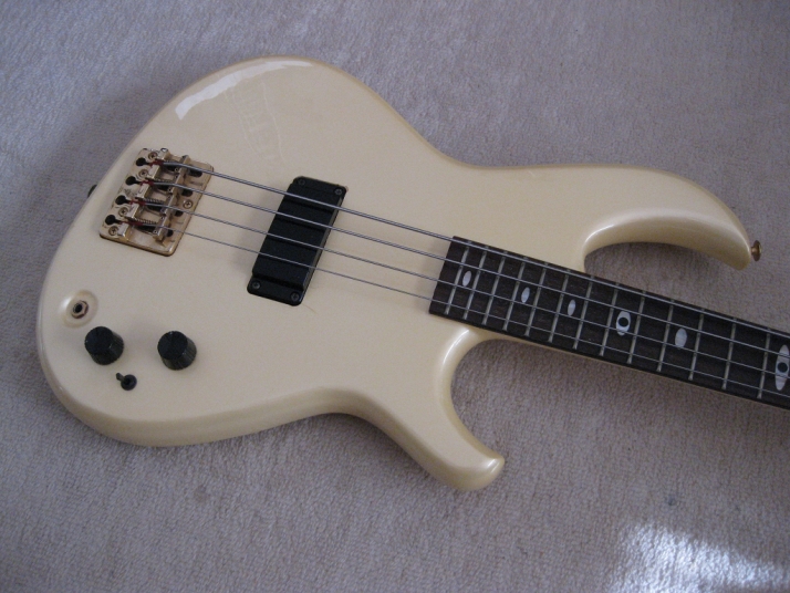 | Aria Pro-II Matsumoku Made SB-R60 This bass is 1983 Matsumoku made SB-R60. It is generally good condition. The neck, frets and electric circuits are all proper condition. The brass nut width is 41.55 mm. The neck shape is like Precision bass. The bridge is a bit rusted, but good weight brass made. There are almost no dents. However, when I changed the PU, I made a bit cracks around PU. The cavity was so small (too tight). Maybe, when they paint, they put the original PU soon. So the cavity became smaller than PU bottom size. Weight is 4.69 as a bit light weight of Aria SB average. As I said, the oroginal PU was broken. I have discussed with Aria Tech people and have decided to change the PU to brand new Aria SB pick up. So, this PU is current SB brand new. It is very good tone. We are going to ship this bass with used Soft Carrying case. Well, enjoy JV bass ! |