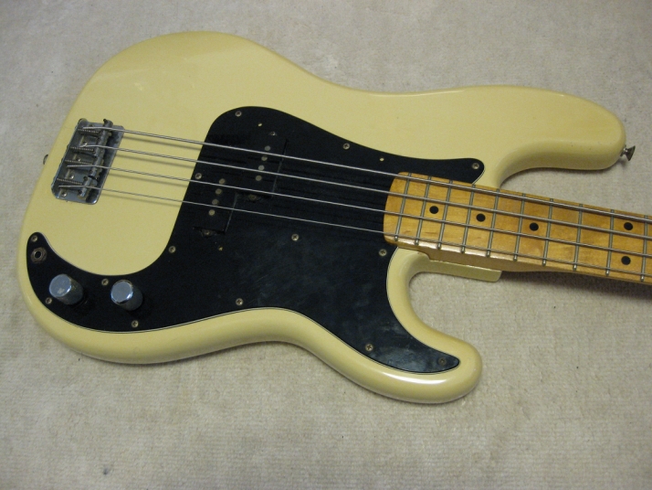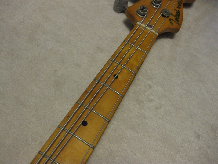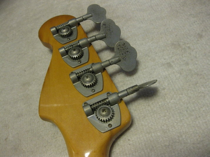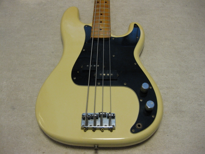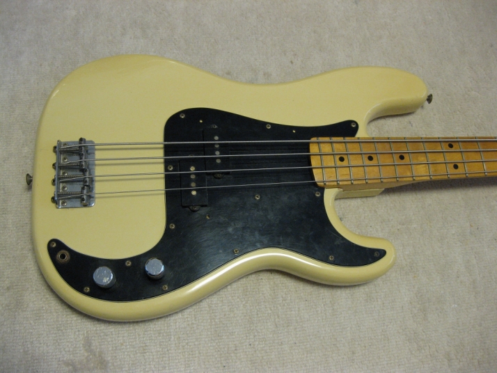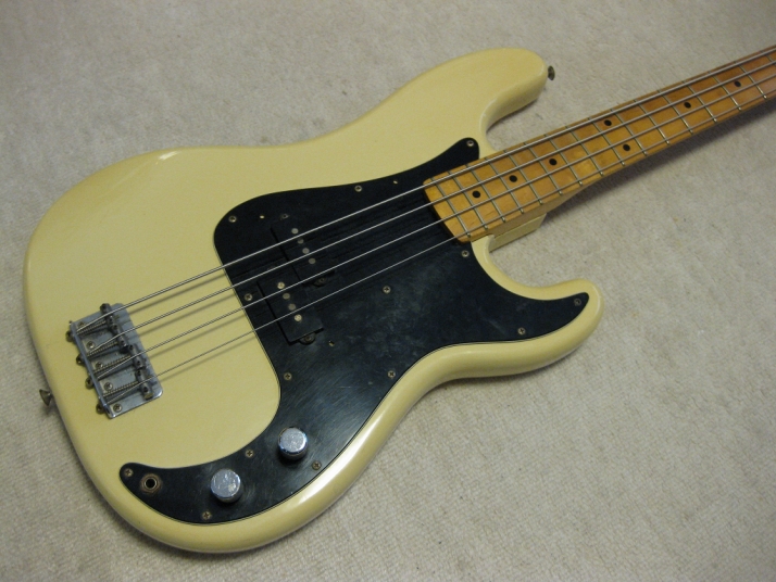 | Tokai Precision Bass PB-48 <Hard Puncher> It is fair condition 1981 made Tokai precision Bass Replica PU is probably original (from soldering). The neck is fine, the truss rod is still workable. The frets are a bit worn but no need to leveling, I feel. The neck head, around the 4th string tuner, you can see a bit paint crack...(maybe a bit wood?). I think this is not really problem for playing. The body has a bit dents and scratches as 30 years old bass. But these are not really visible and serious (refer picture). The sound, it is pretty powerful tone. I like it. We are going to ship this bass with used Gigbag. Please try JV Precision Bass! |