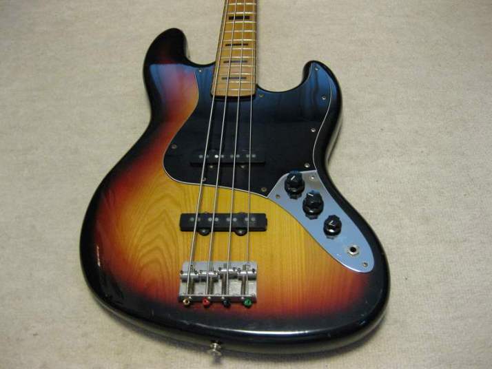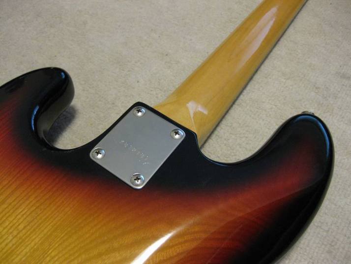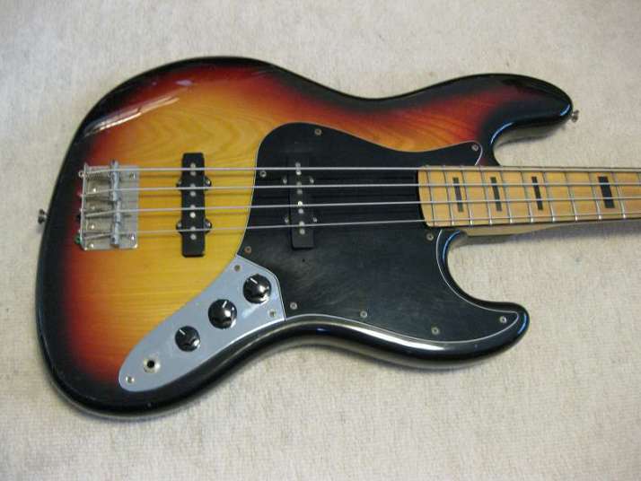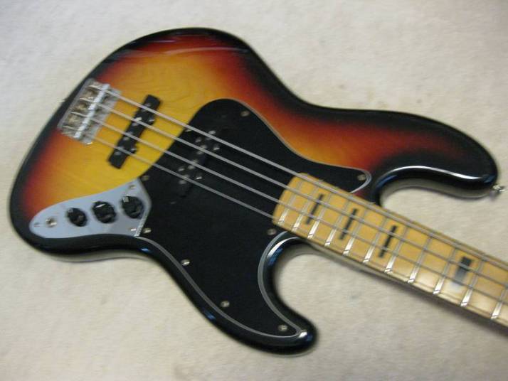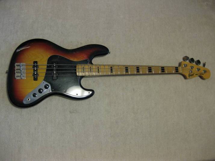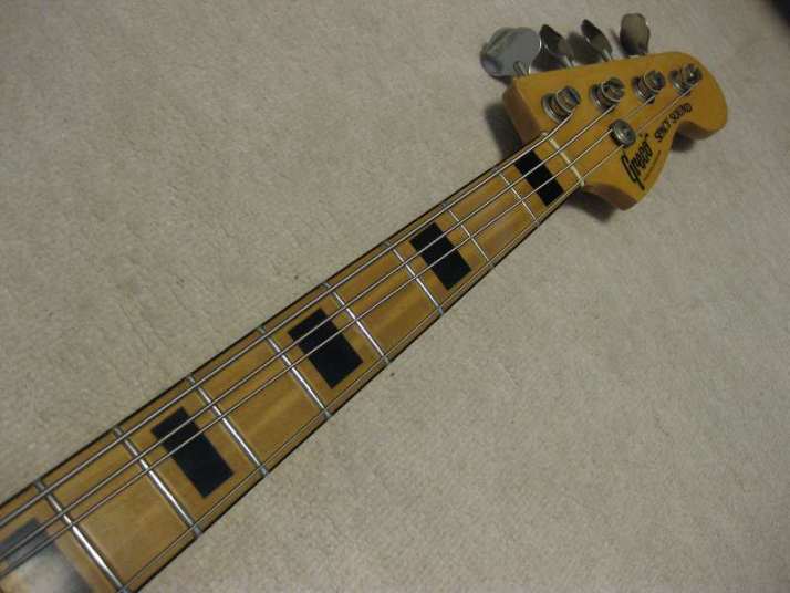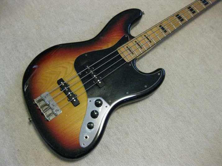 | Greco Jazz Bass JB-500 Maple Finger Board 1981 Fujigen Made This is good condition Greco Jazz bass. 1981 is very closed production to Fender Japan JV serial time. I didn't change any parts for this bass. It seems to be original condition. The body is Sen (Japanese Ash) probably 3P with 4.25g weight. The neck is Maple +Maple finger board with 38.8 mm nut width. Typical JB neck shape. The neck is straight and no twisting. The frets are proper condition. The strings action is currently set as low. It is very good feeling for playing. The maple finger board are bit color changed. Well, just like stratocaster finger board. The body hasn't got serious dents and scratches as 30 year old bass. There are several small dents. But these are not really serious. We are going to ship this bass with used Gigbag. Well, enjoy JV bass ! |