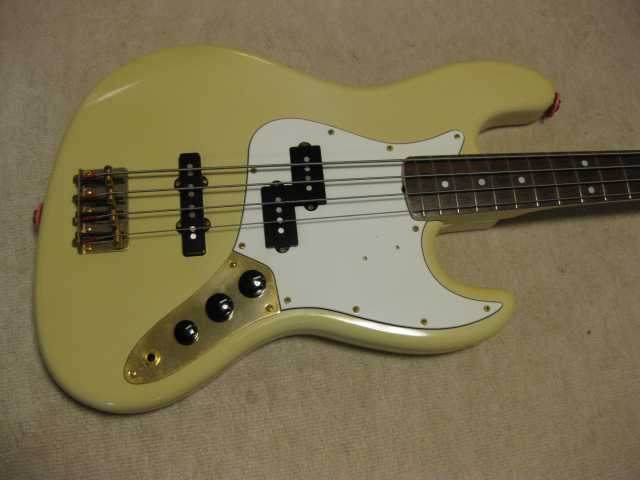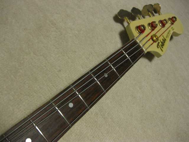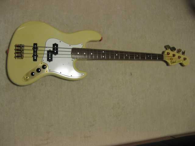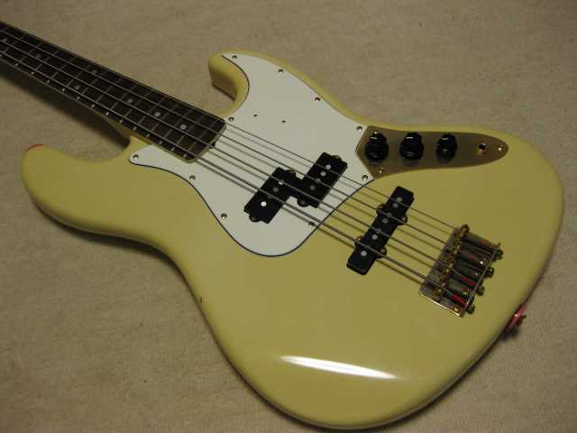 | TOKAI early 80's made PJ Bass I'm not sure the modeling of this bass. It's probably PJ-55 or TPJ-55. I could not find out this model on Tokai catalog. In 80's, all manufacturers offered PJ type bass. I like PJ type mixed sound. Well, mostly, the output of each PUs are slightly different. But the PU balance of this bass is not really big different. Well, this PU layout is original, not modified. So, I'm guessing this bass probably shop or custom order. It is not good condition. There are not serious dents and scratches on the body. The metal gold parts are not really bad condition. The neck and frets are proper condition. The adjusting rod is workable. The neck is maybe Maple 1P with 38.8 mm nut width like Jazz bass. The body should be SEN 3P wood. The weight is 3.97 Kg It is good tone PJ bass, anyway. I hope, you would enjoy this good JV bass! The used Gigbag will be delivered with this bass. |