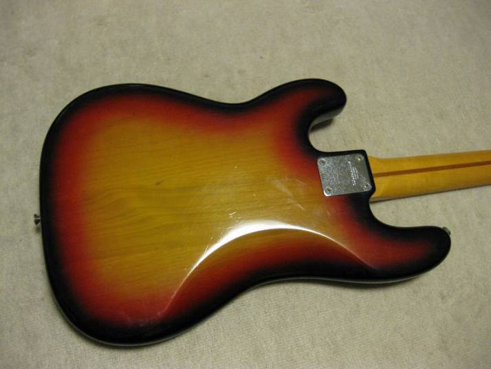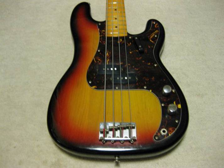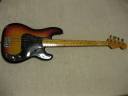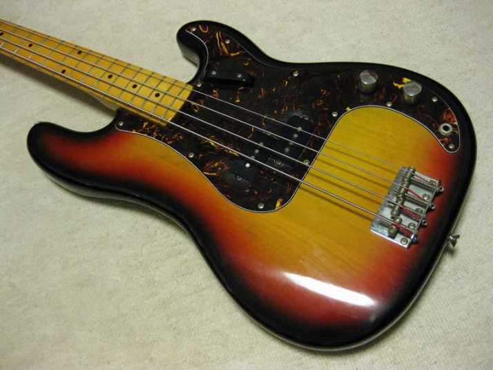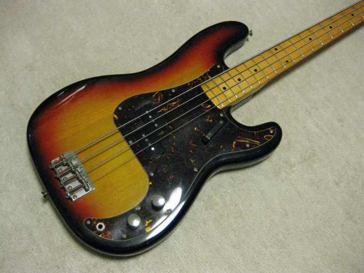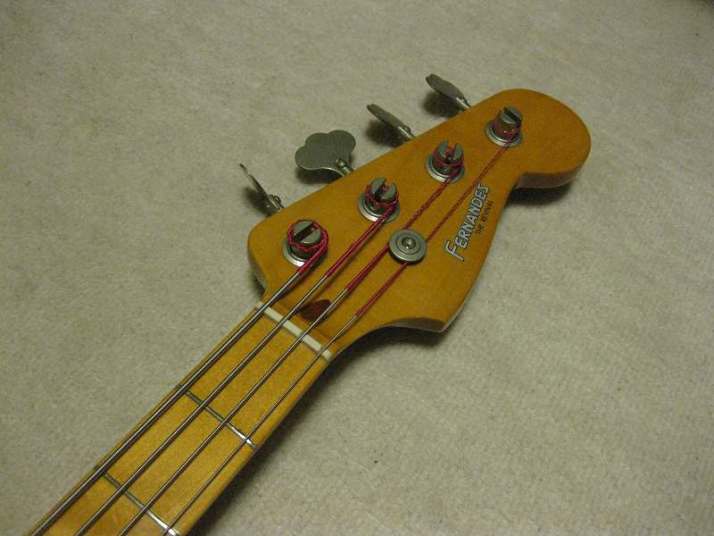 | Fernandes Precision Bass Revival Series 1981-82 made This is good looking Fernandes Revival Precision bass. I think this is most good sales and popular series of Fernandes electric bass guitars. The revival series has 2 generations which were made in 1981-85 and after 1990. This is early time revival model. The neck, frets and electric circuits are all proper condition now, The truss rod is working well. Currently, the strings set up low action. The nut width is 41.4mm, the grip is C, typical P bass grip. The body should be alder 2-3P with 3.91Kg weight. There are a few dents and scratches. The most visible dents are on the top, however, these are pretty small. Pretty clear and heavy tone. The bridge, metal tuner knobs are proper condition. Well, it is good tone bass! We are going to ship this bass with used late 70's made hard case. Well, enjoy JV bass ! |