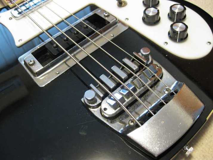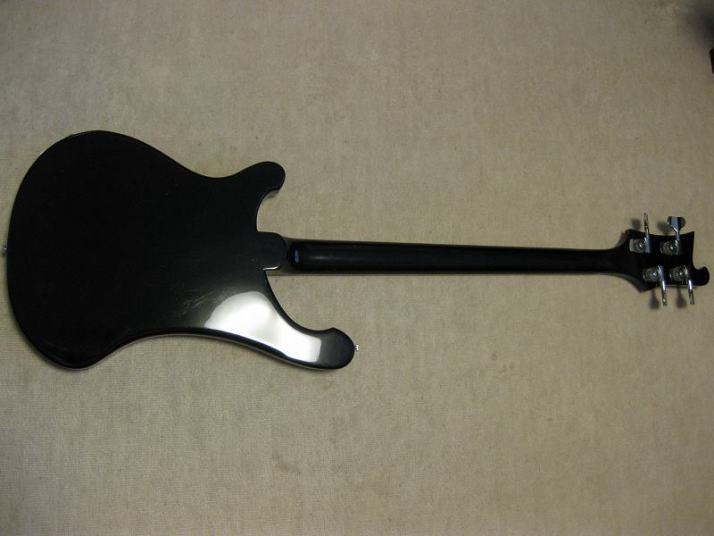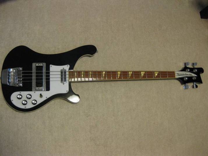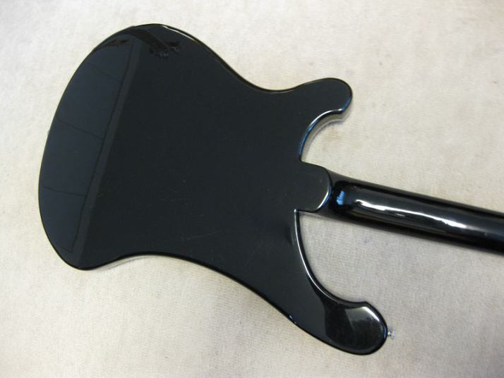 | Fernandes Rickenbucker Model (Mid 80's made) This is first Rick model by Fernandes for me. I have been trying and playing Greco Rick before. Well, this Rick is good as well. When I got this bass, it was not really good condition. So, I clean up all. I also found out the crack on both finger board. I fixed it, now it is functionally fine. The body is maple made (I don't know how many P body. The neck is though neck Maple (probably 1P according to Fernandes catalog). You could see it from the body back. The neck is so far straight (a feel like a bit up bow), but the set up is fine, I felt. Truss rod is working, but no necessary to adjust now. The nut width is 43.45mm I have also changed the knobs. Original knobs are missing. The output jacks are 2. One is normal, maybe use 2 out, it should be stereo out. We are going to ship this bass with original Gig bag (shape like Rick) Well, enjoy JV bass ! |