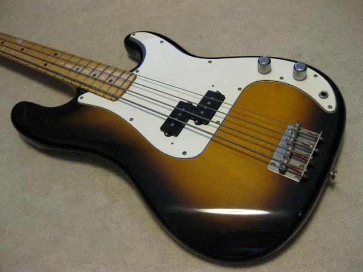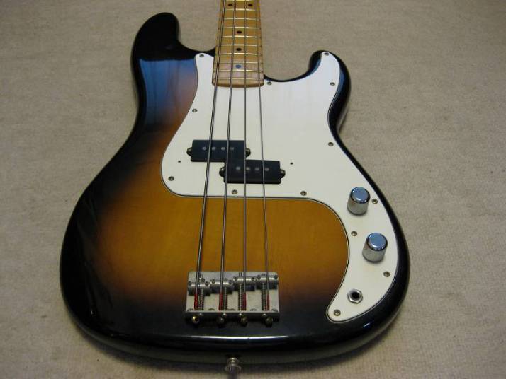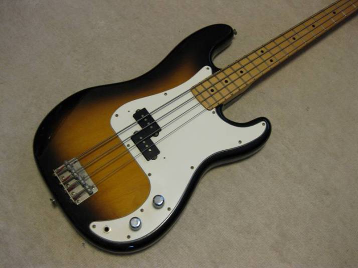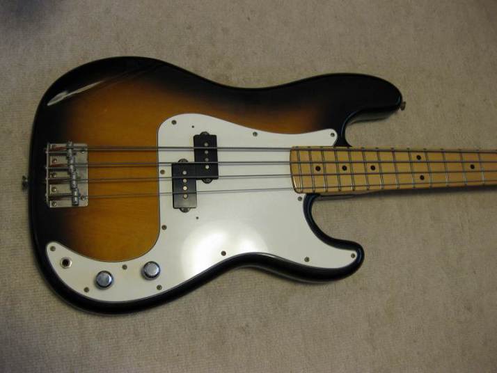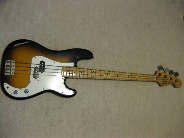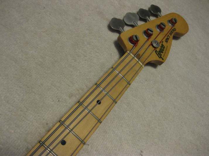| Greco Fujigen Made Precision Bass PB-450 1981 made Good condition Fujigen made Precision bass. This is pretty good condition with original condition. The body looks like Alder...But Greco used the sen this time. I'm not sure why. The neck is maple 1P. Straight, of course. The frets are proper, not really worn. The body condition is good too. There are very little dents and scratches. The metal parts are good condition as 30 year old bass. I would say mint condition bass. The body weight is 4.23Kg. The nut of neck is 42.5mm width. This should be good bass for JV lover. Well, enjoy JV bass ! |