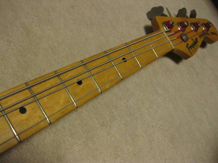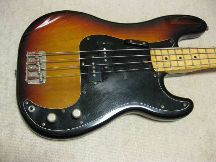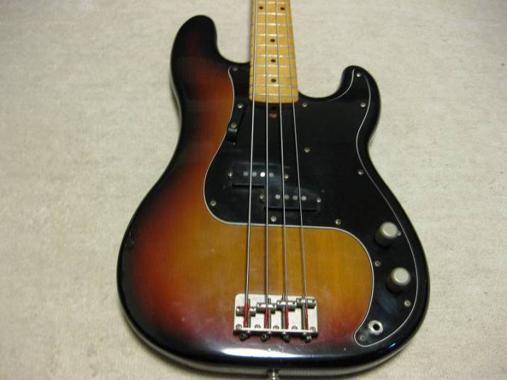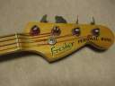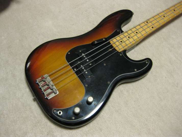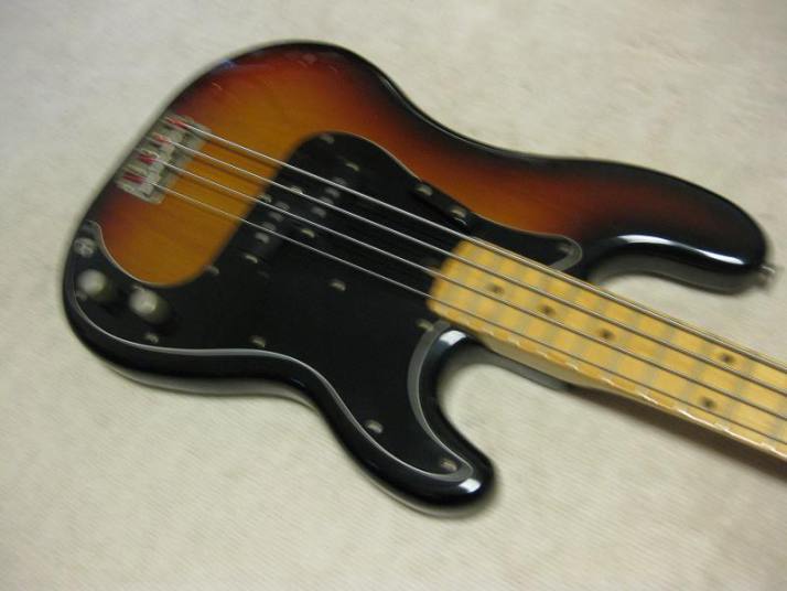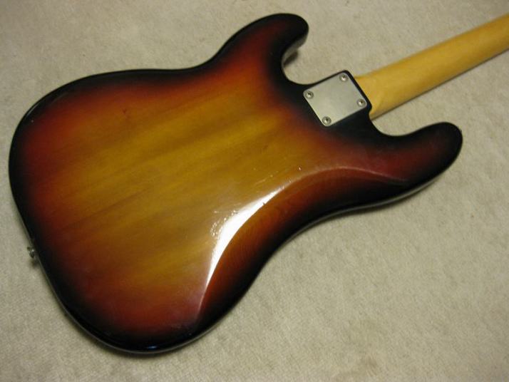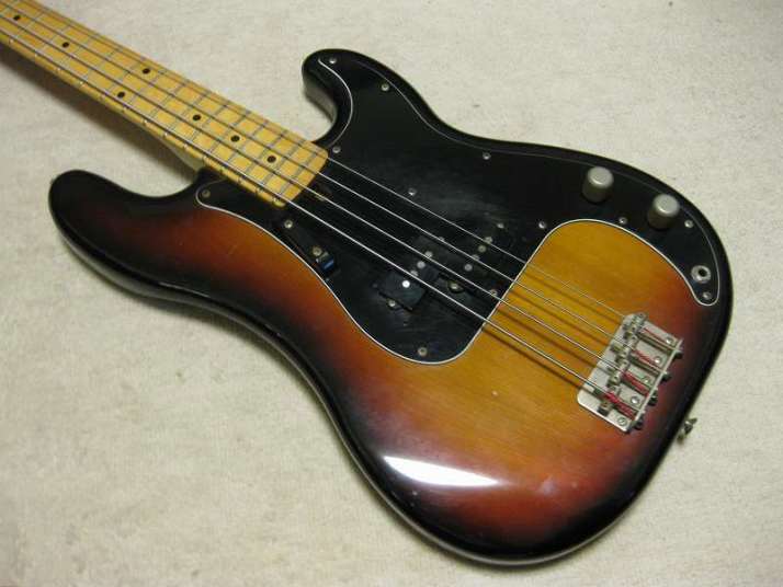 | Fresher FP-358 Precision Bass (Chushin Gakki Made) The distributor (and whole Seller), Kyowa shokai, was bankrupted recently (May 2011). According to the several source, their sales has been dropping a lot after Lehman Shock. Japanese music business is getting shrinking now. I personally like Fresher guitar and bass. Well, these were not expensive range instruments. However, Kyowa tried to reduce the cost and offered lower price than Greco, Fernandes and Tokai products. Early days Fresher were not good replica. But like this bass, this is 3rd Generation, it became a good replica. Well, the Chushin Gakki started better quality manufacturing. The construction of this bass is O.K. This pick guard has a cut around the neck end for truss rod adjusting. Well, that's all. The neck is straight, Truss rod is working and the fret are proper (almost no worn). The maple 1P (only head 2P bonding) and bonded Maple finger board. The nut width is 40.9 mm I'm not sure the body material. It should be Sen 3-4P body think about the other Fresher guitars. This is not Ply wood, It is solid body, anyway, Well, this bass is not really high grade staff. But it is pretty good condition. If you are looking for the JV bass entry model, this is it. We will ship this bass with Gig bag. |