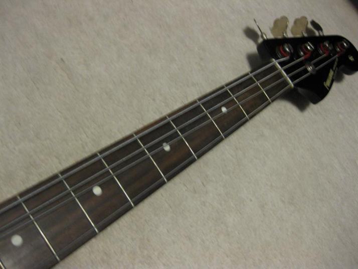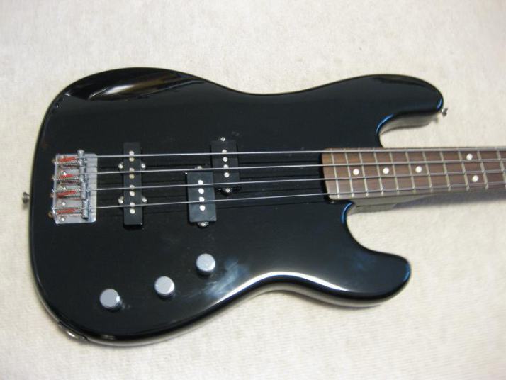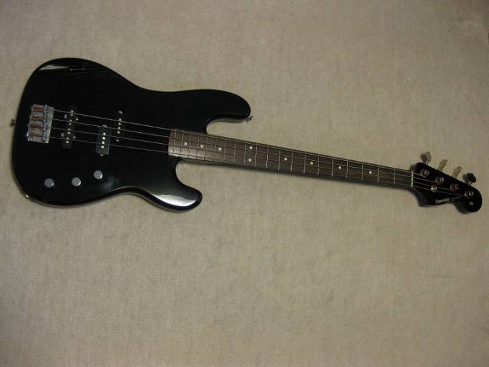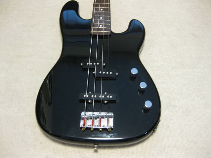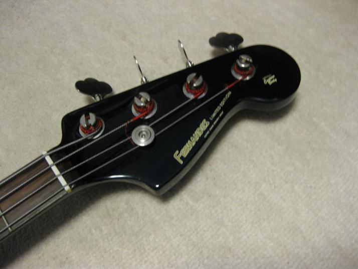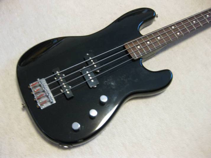 | Fernandes 80's made PJ Bass I have handled this bass series several units. I don't know why the Japanese users didn't pay attention so much. Many people like the replica of old Fender, even it is poor material in use. Actually, good bass for 1st step of JV bass. The outlook is good. We can see only small dent on body side (around jack). The body should be alder 3-4P with 4.11 Kg, the neck is maple 1P with Rose. The neck nut width 41mm just like Precision bass a bit slim. The neck grip is like C. The quality of 80's Fernandes was stable as leading manufacturer. So, this bass can be base of modification or just use as current condition. I have same bass for me, I changed the PUs to Bartorini active. This is really good, so I said this bass can be base of modifications too. Of course, the current sound is good. I like it! We are going to ship this bass with used Soft Carrying case. Well, enjoy JV bass ! |