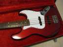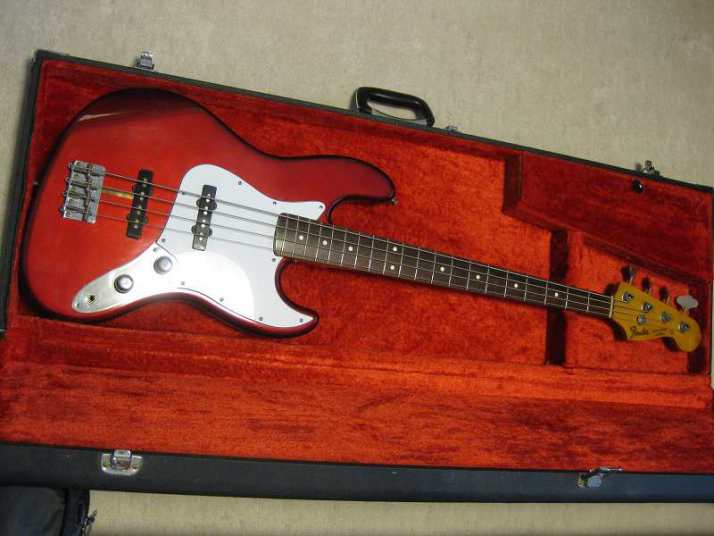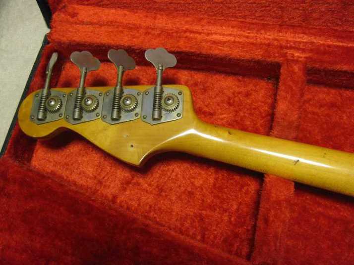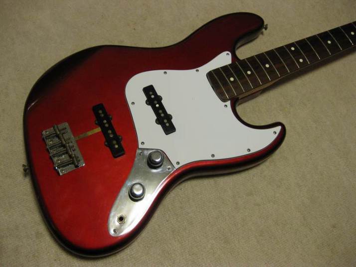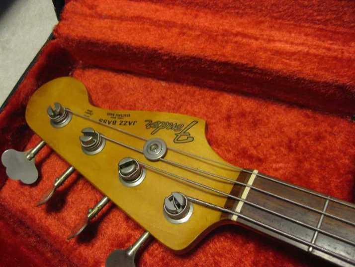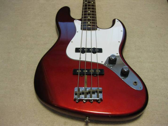 | Fender Japan JB62-115 CAR Fujigen Made MIJ JV serial This is good condition JV serial Jazz Bass. According to the Fender Japan Catalog, this model have U.S.A. Made PU. I have checked it, it looks like so. I also checked the electric components. These are US made too. Well, the neck date is 12-17-82. The body has A red stamp. The serial started from JV2xxxx I'm wondering the body paint is nitro or not. The catalog said it is Nitro. I could not see any melting. I could see some paint cracks. It should be Nitro. Well, 115 is only Nitro paint. Also 2V2T control is 115 only. Tone knobs are not smooth, like click. I don't know this is original or not. But, it is functionally O.K. The wood should be the alder. The weight is 3.7Kg. It is pretty light weight. Well, this is early JV serial JB bass typical weight. The neck is maple 1P + Rose finger board with 38.65mm nut width. The tuner is reverse type on. The bridge suddle is spiral type. The body condition is so so. There are bit scratches and dents. it is 29 years old bass. Think about the age, this looks is vintage looking. I have just put the new pickguard on. This is not Fender Japan original. Well, the tone is beautiful. I love it very much. The metal parts are proper condition, not really rusted yet. We are going to ship this bass with used hard case (not Fender Original) Well, enjoy real JV serial bass! |