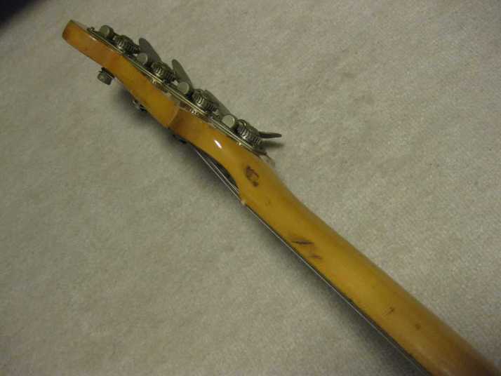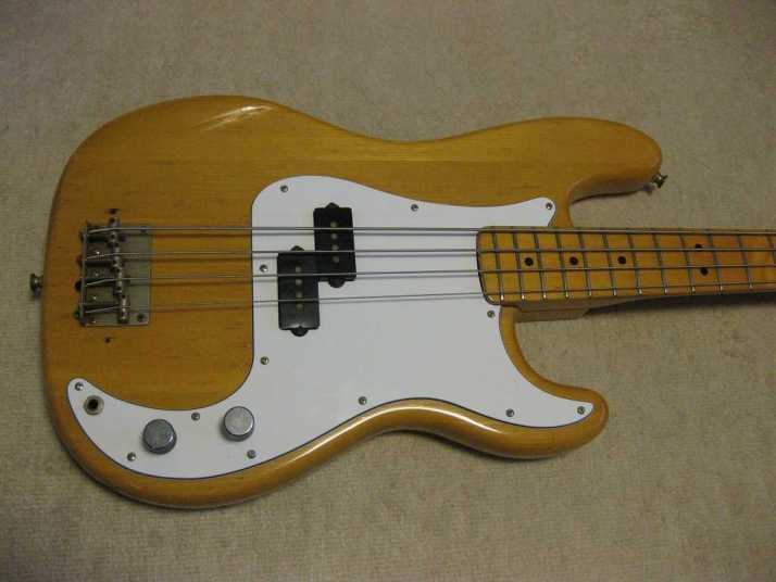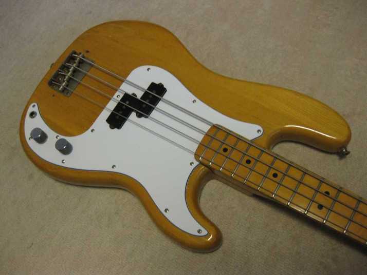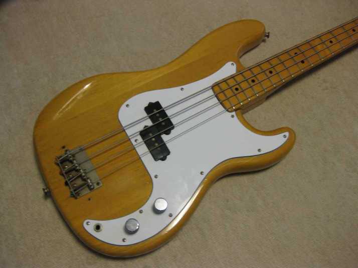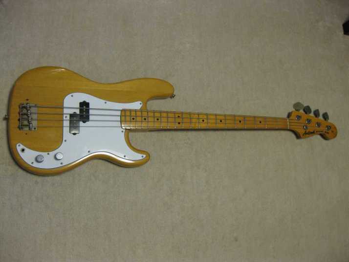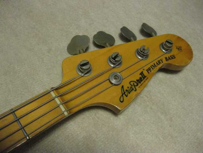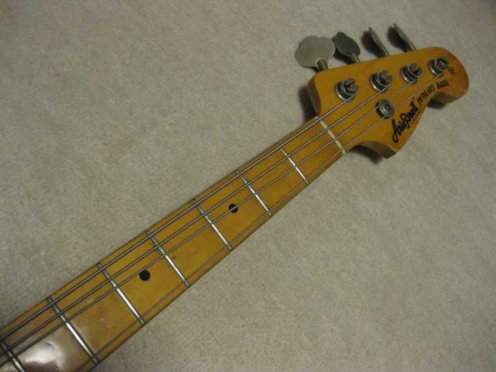 Aria Pro-II Matsumoku '78 Made PB-500 This is 1978 Matsumoku made bass. The condition of this bass is good except the pick guard changed. It has several extra holes for finger rest. So, I have changed it. Therefore, under pickguard, you could see some of screw holes. The metal hardware are rusted bit. However, the neck and electric components are O.K., so I didn't touch it. The neck is straight and Frets (are bit worn) are fine. The truss Rod is still adjustable. The nut size is 40.5mm. The neck is maple 1P (head area 2P???) and maple bonded finger board. The body should be Sen 3-4P with 4.06 Kg weight. The body condition is as shown on picture. There are several dents and scratches. The natural color is not highlight those dents and scratches. The neck behind has small dents too. But these are not so bad. We have checked all functions. So, you could play when you get this bass. We are going to ship this bass with used Soft Carrying case. Well, enjoy JV bass ! |