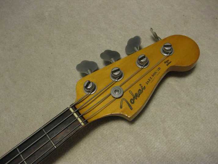 | Tokai Jazz Bass JB-45 1982-83 Made This is good condition Tokai early 80's made Jazz bass model. I'm not sure exact model number of this bass. It seems to be JB-45 or 50. From the tuning key, it should be JB-45 model. It is almost 30 years old bass. It is good tone. The outlook is good condition. There are not so many scratches and dents. Of course, this is not brand new bass, you could see small scratches and dents. I had many Tokai basses before, this is one of good condition. The neck is straight and no twisting. The truss rod is adjustable. The frets are proper condition. The neck shape is like C. The Nut width is approx. 39 mm The Sen 3-4P body, probably, with 4.31Kg. All electric circuits are original. When I got this bass, the previous owner took off the pick guard. So, I put the brand new pickguard. We are going to ship this bass with used Gig bag. Please try JV Jazz Bass! |