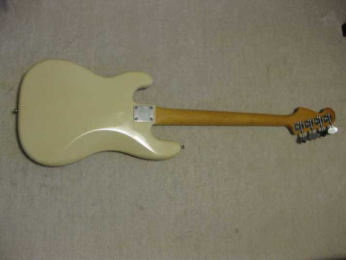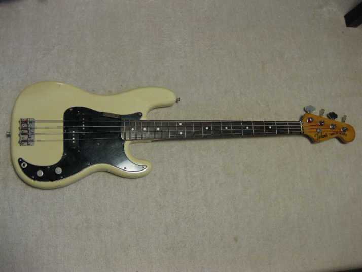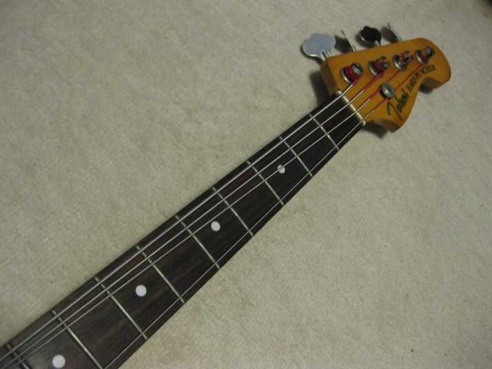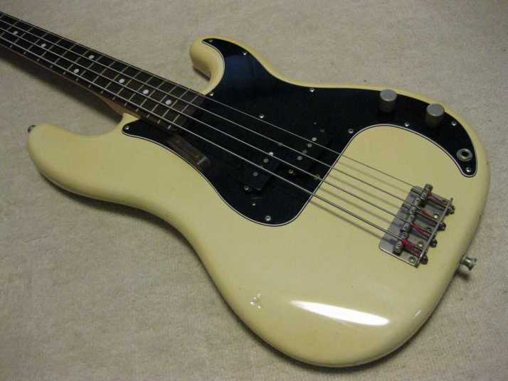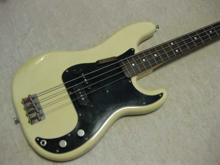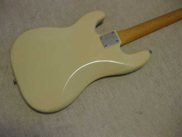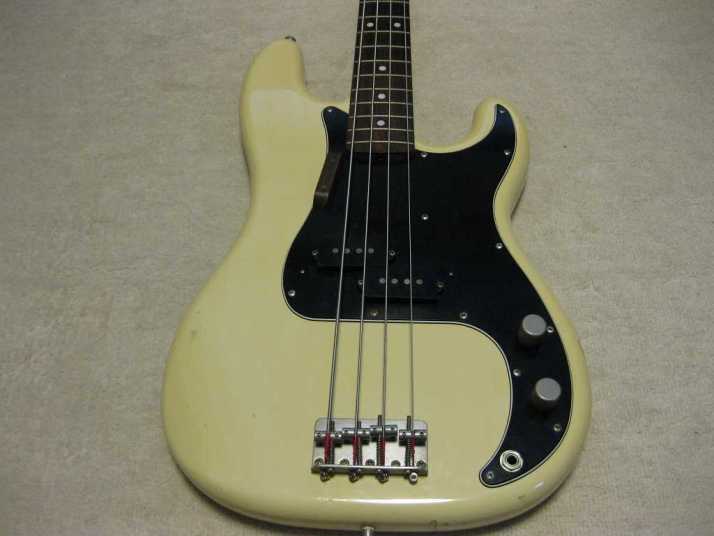 | Tokai Precision Bass PB-45 1978-79 Made This is conversion bass. Well, but both body and neck are same era (1978-79) Tokai made. When I got this, the neck was complete bow and frets were refretted by not professional (need to time to refret for this case). So, I replaced the same era Tokai neck from my parts stock. The tuning key was replaced too. The original tuner is 3 screw type. The replaced one is 4 screw type. When, I assemble this bass, I have made the new screw holes (of course, old holes were fixed). It is almost 30 years old bass. It is good tone. The outlook is not really good condition. There are many scratches and dents. I could say it is proper (so-so) condition even conversion bass. The neck is straight and no twisting. The truss rod is adjustable. The frets are proper condition. The neck shape is like C. The Nut width is approx. 42 mm The Sen 3-4P body, probably, with 3.75Kg. It seems that the electric circuits are original. We are going to ship this bass with used Gig bag. Please try JV Precision Bass! |