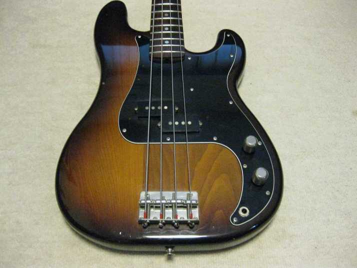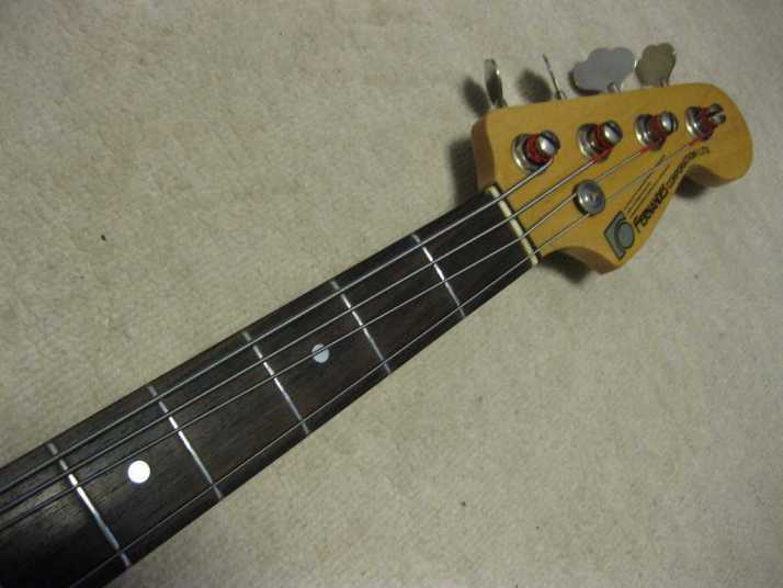 | Fernandes Precision Bass Late 70's Tokai Made This is fair condition Tokai made Fernandes Precision bass. As You may know, this logo type bass was made only for 2-3 years manufacturing. After this series, Fernandes started Revival series. The neck is straight not twisting. The truss rod is adjustable. The nut width is approx 41.8 mm. The body is probably Sen 3P (looks like 2P) with 3.92 Kg weight. The frets are proper condition (bit worn) The electric circuits were probably original. There are not so many few dents and scratches. Well, It is pretty old, please recognize when you are considering purchasing. We going to ship this bass with the used Gig bag. Well, enjoy JV bass ! |