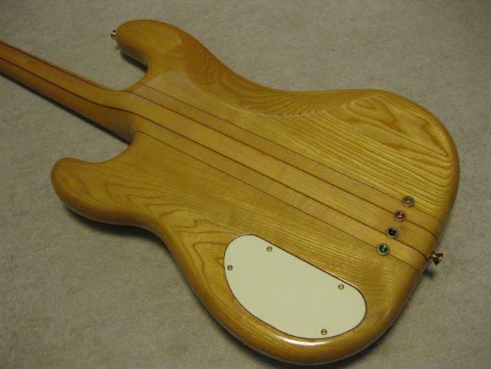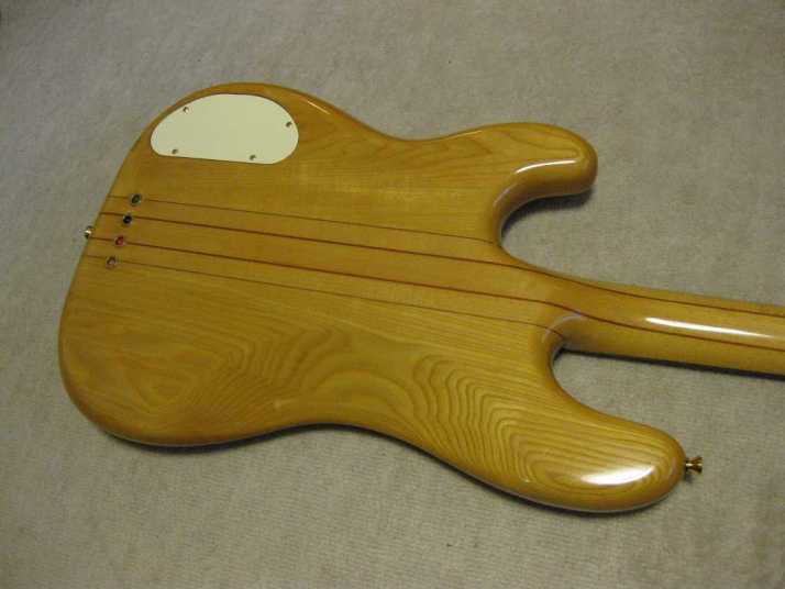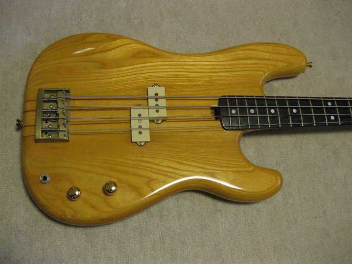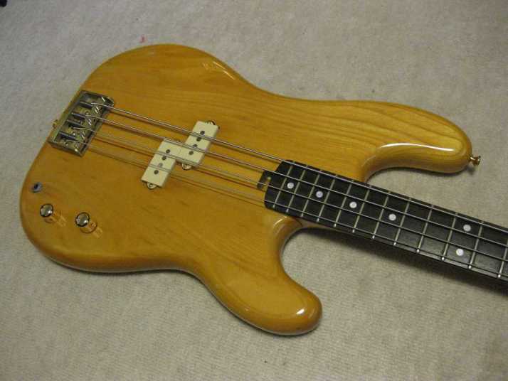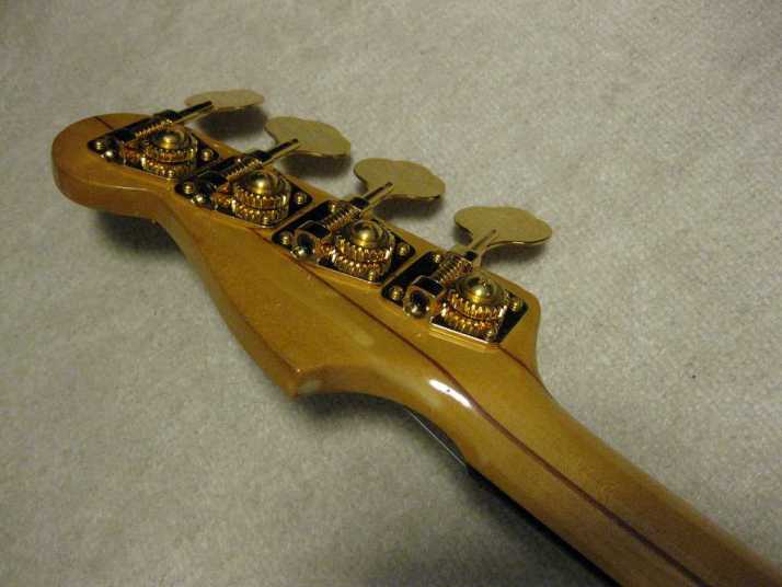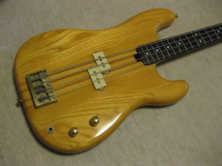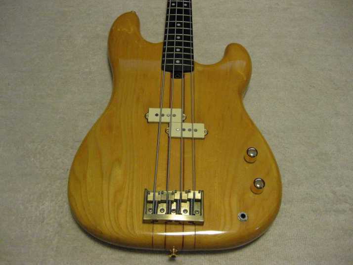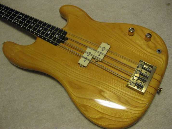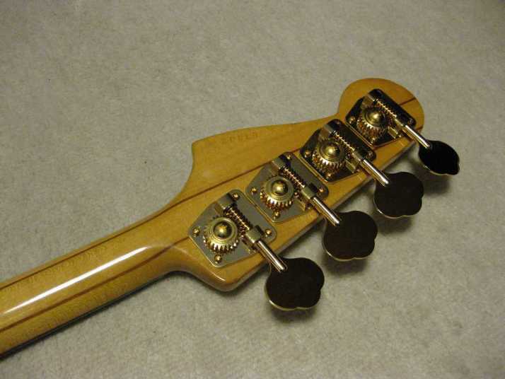 | Fernandes Bomber Bass Through Neck original Early 80's Made Fernandes made several though neck model early 80's. Absolutely, these guitars and basses were influenced by Alembic model. Anyway, this bass outlook is good. There are some top coat part became a milky due to the time past. However, generally, it is good condition. When I got this bass, most of metal parts were rusted. Well, the nut and bridge were made by Brass. So, I reassembled them and polish. The tuner, knobs, string guide and screws are no way to polish. So, I decided to change those to all brand new parts. The tuner is Gotoh made Gold. The knobs, string guide and screws are SCUD gold type. Now, it is very good looks! The neck is though type. Standard C grip like with 40.3mm but width. The though neck offer you pretty smooth fingering at high frets area. The Body is Sen (Japanese Ash). The weight is 3.89Kg. Well, frets, truss rod are proper condition. Well, it is good tone bass! We are going to ship this bass with used Soft Carrying case. Well, enjoy JV bass ! |