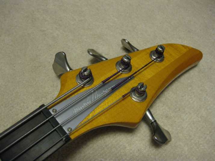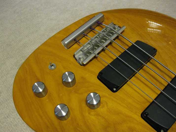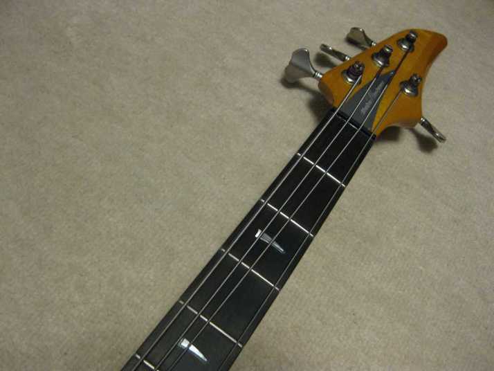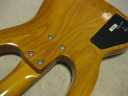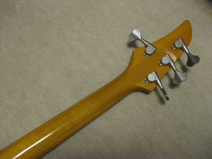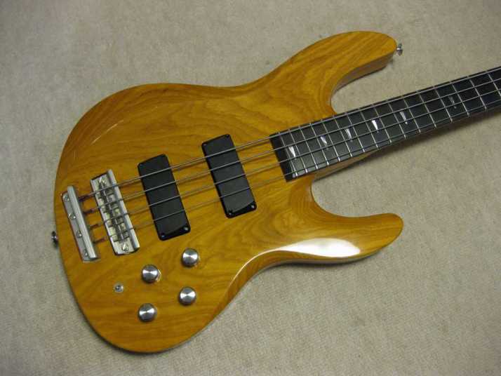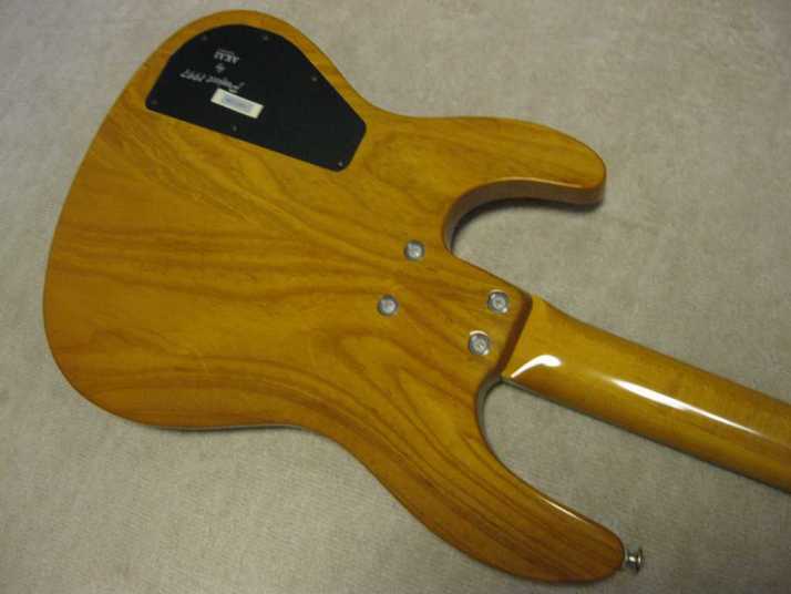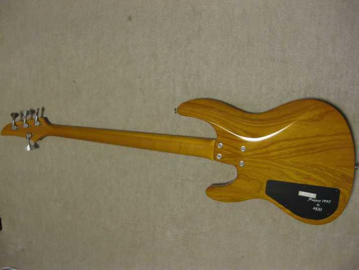 | AKAI PROFESSIONAL 1997 SB-411 This is actually brand new bass. I got this from the factory (Vestax). As you may know (if you knew well about JV history), this bassr is already discontinued. You could check all story about Akai guitar on my WEB page. For 13 years. this bass is sleeping at factory, and delivered here. It is just like time machine. I started to check this bass detailed. This bass is fully original designed bolt on neck style. It has a good quality 2P ash body and 3P maple neck (keep high durability). The finger board is Ebony. The bolt on neck was set on the body with heelless cut. It makes very easy play for high position. The neck head has the angle like Gibson guitars. It made the good tension without strings guide. The scales is same with 34 inch like Fender with 24 Frets.. The neck shape is almost like C, The nut width is 41mm between JB and PB. it is very smooth, I love it very much. The hardware, Gotoh Tuner and original designed bridge. This bridge has the suddle Lock stopper. When you set the suddle with intnation adjustment, you could lock the position of suddle. It prevent the suddle resonance. Pick ups are -S-S Layout like Jazz bass. This bass has the pickup cover. Of course, these pickups were made for 1997 series. It is pretty good tone. Active circuit is designed for pre-amp. 1V 2T(Treble,bass) and PU balancer. Small slsector switch changes active and passive control. The weight of this bass is very light. It is only 3.7 Kg. Very good quality Ash wood is used. No doubt, if we re-issue this guitar now, it should be over US$ 3000. Good value for great historic MIJ bass now. If you have any question, just let me know. This bass on photos were sold. We could get others soon. |