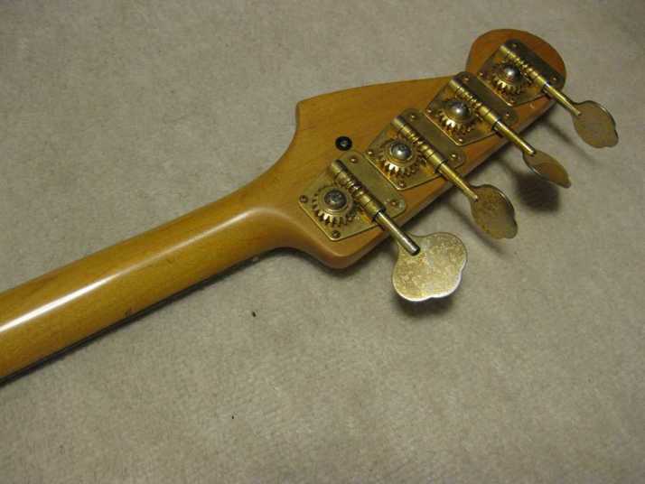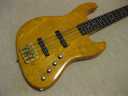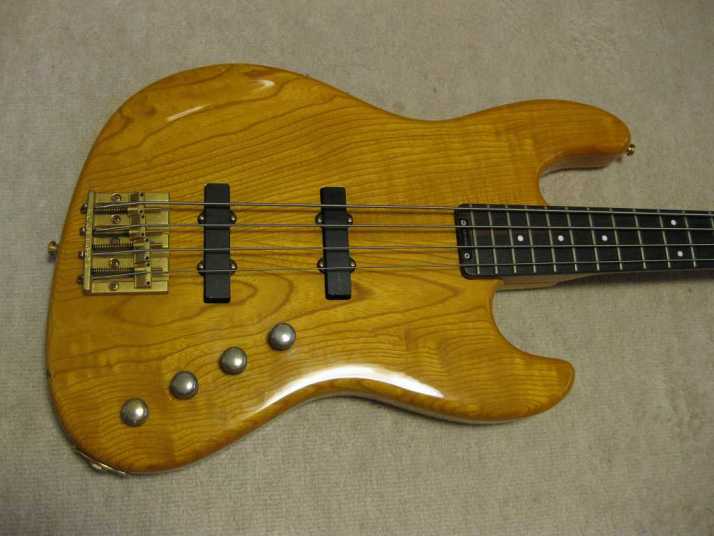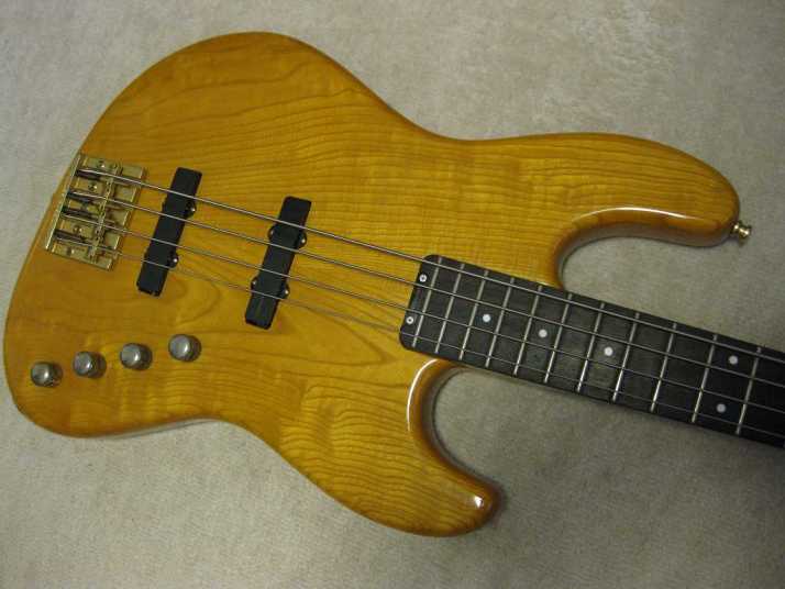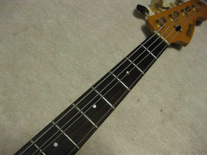 | Blade Levionson (Japanese Made) This is not really Japanese brand bass. However, I got this bass because it is MIJ bass. Blade is still existing in Switzerland and offering the good quality guitars and basses. In 80's (middle - late), many custom guitars were sold in here. I'm not sure which Japanese company was distributing Blade. After checking many source, Blade was distributed by Tune guitar Technology. If so, they were distributed by Deviser Co., Ltd. which is currently distributing BUCCHUS guitars. Levison was sold like custom order guitar/bass here. At the music store, they have order sheet to fill in the end-user requirements. Generally, their bass was call as B2 series. Well, they made many kinds of body materials. These are mostly high quality woods. When this bass came my office, the electric circuits were damaged and Bridge was changed. However, the sound is pretty good. I just check the circuits and repaired (1 pot was changed) and put the BADASS Brass bridge. Now, this bass is really good tone. Of course, I have changed the screws and jack plate in gold color. The body is probably Ash 2P has bit flame pattern (4.7Kg) Neck is Maple 1P (39mm Nut width) with a bit flamed pattern too. The body shape is almost like Fender JB, but has a different shape around neck plate. It made us to play easier at high position. The neck is maple 1P with Rose Finger Board. It seems to be straight now. If you are really fan of JV rare brands, just ask me. Good era's great bass. |