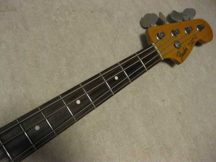 | Fender Japan JB62-60 CAR Fujigen Made MIJ N serial This is good condition N serial Jazz Bass. According to the Fender Japan Catalog, this model have Japan Made PU. It means that Gotoh PU are equipped. The body paint should be Poly finish and alder or basswood. Fender Japan catalog said alder or basswood. I could not specify which wood, anyway. The weight is 4.1 Kg. It is standard JB weight. The neck is maple 1P + Rose finger board with 39.8mm nut width. Of course, it is straight and no twisting. The frets are proper condition. The tuner is not reverse type on. The body condition is good. There are bit scratches and dents. it is over 20 years old bass. Think about the age, this looks is vintage looking. The metal parts are proper condition, not really rusted yet. We are going to ship this bass with used hard case (not Fender Original) Well, enjoy N serial bass! We are going to ship this bass with used hard case (not Fender Original) Well, enjoy E serial bass! |