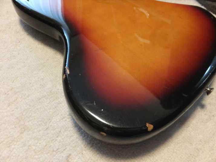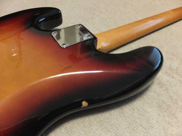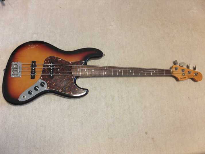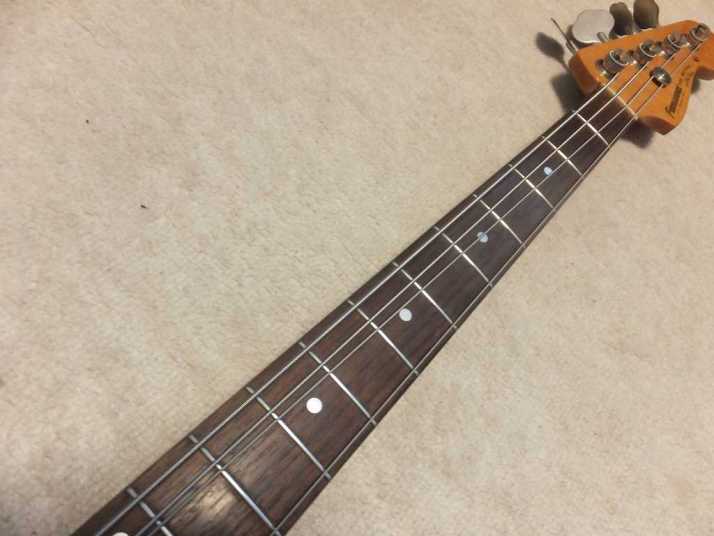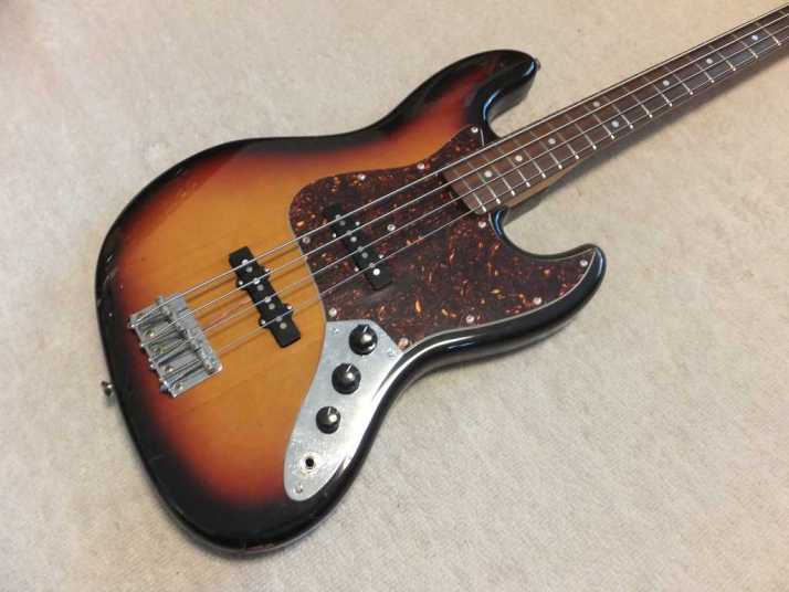 | Fernandes Jazz Bass Revival Series Early 90's made This is Mint- condition 90's made Fernandes Jazz bass. As You may know, Fernandes restart the revival series early 90's. The difference between early revival and later revival is Logo mark. Later model Logo mark is under top coat paint. So, it is not easy to remove the logo mark. Early model has the removal Logo. So, many player took off the logo mark. When I got this bass, I felt that the PU is not really good. So, I have changed it to Brand New Gotoh PU. Well, Gotoh has been supplied the PU for Fernandes. So, it is something like original condition? The neck is straight not twisting. The truss rod is adjustable. The nut width is approx 38.3 mm. The body is probably Ash 3P with 3.96 Kg weight. The frets are proper condition (bit worn). The electric circuits has been changed when I change the PU. There are few dents and scratches, please check the pictures. We going to ship this bass with the used Gig bag. Well, enjoy JV bass ! |