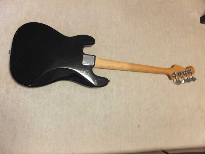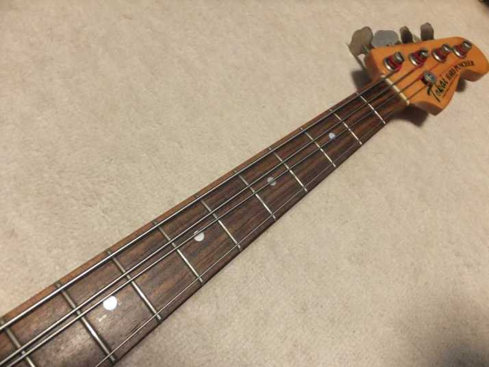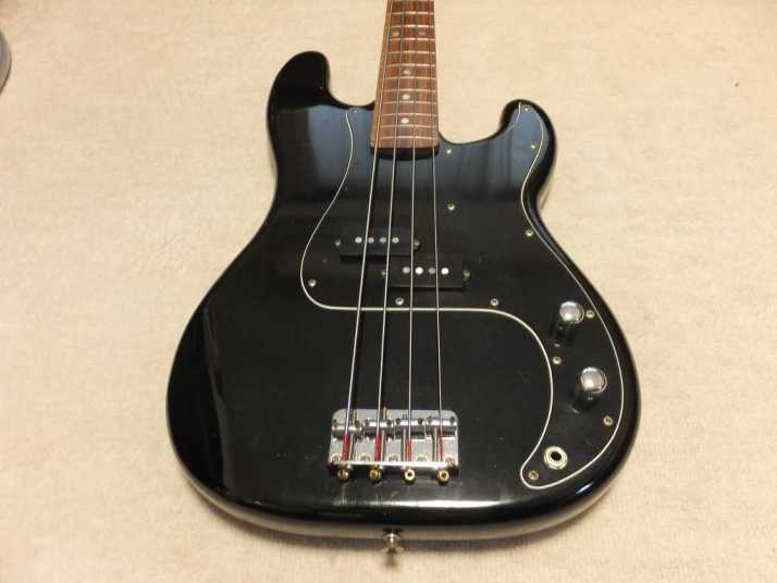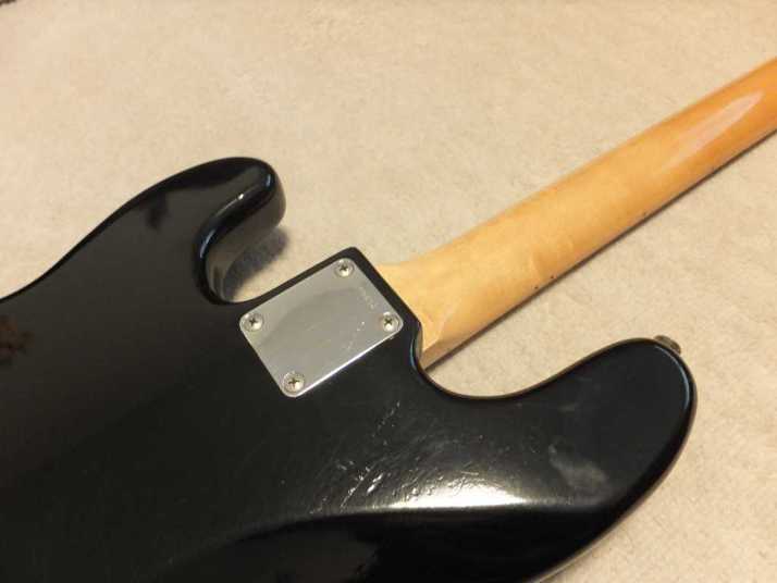 | Tokai Precision Bass TPB-40 or 45 <Hard Puncher> It is fair condition 1983 made Tokai precision Bass Replica When I checked the bass, I found many dents. On the back, maybe belt scratching...(but not color off) Well, this is fair condition bass. The metal parts are proper condition. I think the bass saddle adjusting (intonation) screw has been replaced by previous owner. The neck is fine, the truss rod is workable. It should be tighten 70% some now. The nut width is 41.5 mm. The frets are proper condition too. The body material should be Sen (Japanese Ash) 3p, a bit heavy weight (4Kg) with other Tokai Hard Puncher bass. The sound, it is PB tone. We are going to ship this bass with used Gigbag. Please try JV Precision Bass! |